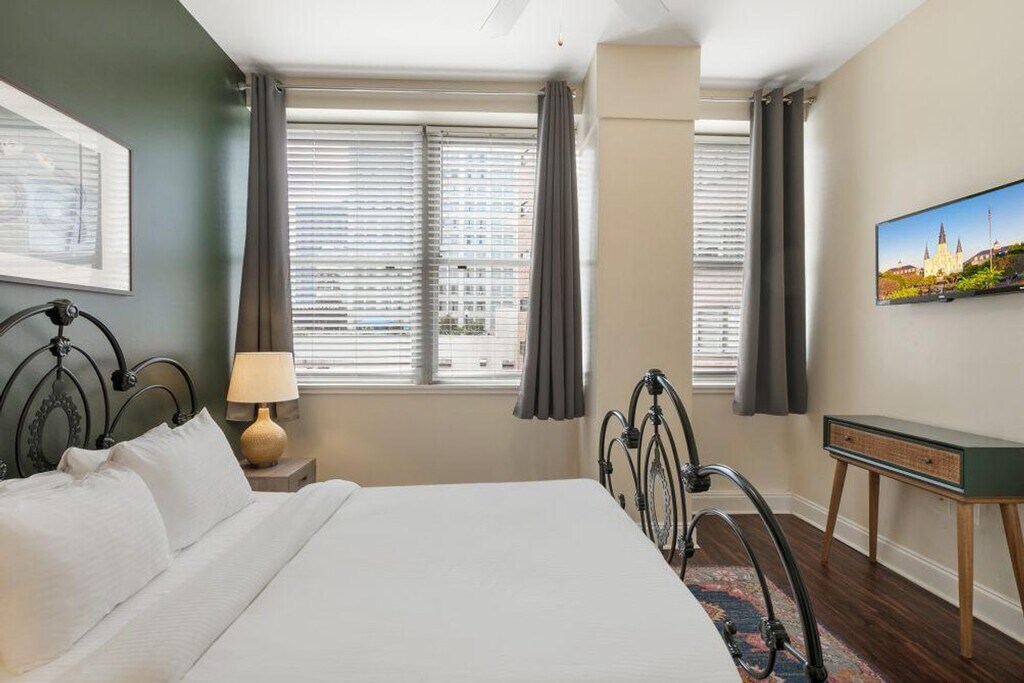 Situated just a brief 5-minute walk from the renowned French Quarter, this outstanding residence lies at the heart of New Orleans, boasting a sophisticated and fully furnished interior that seamlessly blends modern comfort with the city's vibrant cultural heritage. Step into luxury within this residence, featuring a well-appointed kitchen and carefully curated furnishings that enhance its chic atmosphere. Enjoy shared amenities such as a barbecue area, outdoor seating, and a fitness center, providing the ideal setting for relaxation and leisure. Take in breathtaking views of New Orleans from the rooftop pool, offering a unique and unforgettable experience. This residence features a well-appointed kitchen and carefully curated furnishings that enhance its chic atmosphere. Enjoy shared amenities such as a barbecue area, outdoor seating, and a fitness center, providing the ideal setting for relaxation and leisure. Take in breathtaking views of New Orleans from the rooftop pool, offering a unique and unforgettable experience. On-site paid parking available, starting at $40 per night for a maximum of 3 cars. Conveniently positioned just one block from Canal Street, this residence provides easy access to the iconic Streetcar, simplifying exploration of the city's attractions. Additionally, the nearby convention center, located just 1.6 miles away, adds to the convenience for both business and leisure travelers. Indulge in the city's renowned nightlife, with Bourbon Street's jazz clubs, Cajun restaurants, and charming bistros mere steps away. For a more tranquil retreat, explore the quaint streets leading to the French Market, a hub of gourmet cuisine and local craftsmanship. Don't miss the chance to wander through Jackson Square, where street performers entertain against the backdrop of the St. Louis Cathedral. Furthermore, this residence is within walking distance of the Caesars Superdome stadium, providing easy access to events and entertainment. Security is a top priority with controlled access, ensuring a safe and peaceful living environment. We may use video surveillance in public areas. Early check-in or late check-out may be available for an additional fee. The number of overnight guests cannot exceed the maximum occupancy. Extra guests and visitors are not permitted without management consent. Violators will be charged a $200 to $500 fine. House parties and the use of illegal substances are strictly prohibited. Any violation will result in immediate eviction and a $500 fine. A copy of a State Identification Card or Driver's License will be requested upon booking. Guests residing within a 40-mile radius must contact the host before booking. Travelers must be at least 21 years of age to make a reservation. This is a non-smoking building. Smoking is not permitted anywhere in the building, including the rooms. Any violation of this policy will incur a $250 fine, plus cleaning costs to remove smoke odors from the unit and linens. Pets are not allowed. Violating the pet policy may result in a $500 fine. Guests with service animals are encouraged to contact us before booking. Quiet hours are from 9 p.m. to 8 a.m. Violators will be charged a $200 fine. We are not responsible for any accidents, injuries, or stolen or damaged items that occur while on the premises, its facilities, or parking areas. The number of guests on the reservation cannot exceed the number specified in the booking. This includes visitors. Failure to comply with the guest limit may result in cancellation of the reservation. For same-day late check-ins, prior approval from the host is required before booking. [SI]