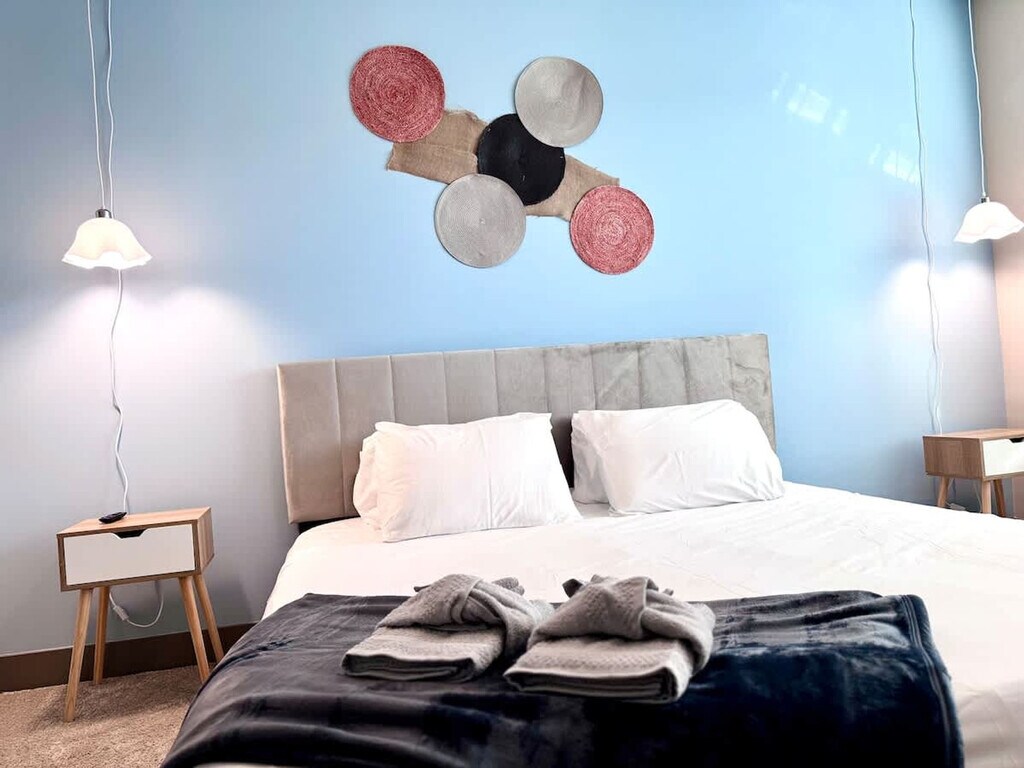 Feel at home in this modern 1-bedroom, 1-bathroom apartment in Winter Garden, FL. Located on the second floor with one ramp of stairs to reach the unit, this stylish and cozy apartment is the perfect home base for your Florida getaway, offering a relaxing atmosphere and convenient access to nearby theme parks, shopping, and dining. The apartment features a bright and spacious living area with ceiling fans in both the living room and bedroom, an open layout with upgraded flooring and modern tile accents, and a private balcony. The fully equipped kitchen includes energy-efficient stainless steel appliances, granite countertops, a wine fridge, refrigerator, stove, microwave, coffee maker, blender, toaster, cookware, and utensils. The spacious bedroom offers a comfortable king-size bed with premium linens and a large walk-in closet. Pets are allowed, but some breed restrictions apply: Pit Bull Terriers/Staffordshire Terriers, Rottweilers, Doberman Pinschers, Chows, Presa Canarios, Akitas, Alaskan Malamutes, and Wolf-Hybrids. Luggage drop-off is available after 12:30 PM with advance notification. Enjoy resort-style amenities and convenient access to nearby theme parks, shopping, and major Central Florida attractions. Quiet hours are between 10:00 PM and 8:00 AM. The building does not have an elevator. [SI]
