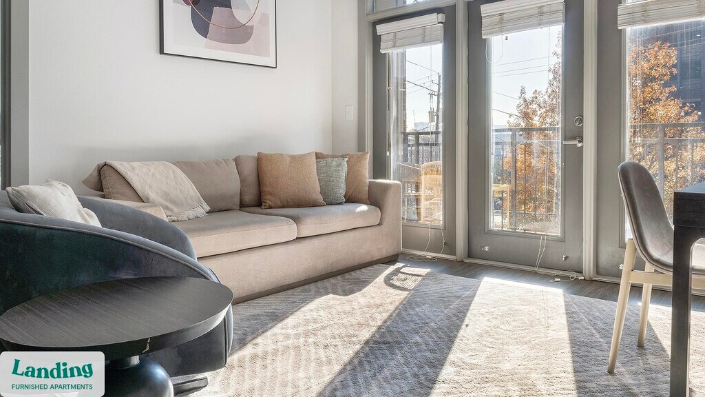 Landing offers flexible lease terms from weeks to months. Please always visit our website or contact us for the latest pricing & availability. Stay longer, save more: 6-Month Minimum base rent: starts at $2877/mo 12-Month Minimum base rent: starts at $2545/mo Landing offers flexible leases across a network of over 35,000 fully-furnished apartments throughout 375+ cities so you can rent on your terms, practically anywhere, and avoid the hassle of paying deposits or application fees. Visit to learn about all the benefits of a Landing membership, see our competitive up-to-date pricing, explore available apartments, take virtual tours, and make reservations online without jumping through traditional rental hoops. Landing's apartments at The Brady are designed for comfortable, easy living, with the ability to stay as long as you like. Experience living with Landing Every apartment is outfitted with all the modern essentials including: custom-designed furnishings, a fully-equipped kitchen with deluxe stainless steel appliances, a gourmet coffee maker, premium linens, Smart TVs, and incredibly fast, reliable internet for working from home. When you live with Landing, you'll enjoy a hassle-free experience with the added benefit of 24/7 access to our dedicated member experience team. Some of the nitty-gritty: a background check and proof of income are required; we're completely smoke-free; bundled utility packages and pricing vary based on length of stay; pet-friendly options available; listed price reflects a 12-month minimum stay.