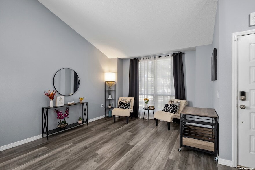 Welcome to this well-maintained two-story home in northwest San Antonio, offering 3 bedrooms, 2.5 bathrooms, and a bright, open layout designed for comfortable living. A sitting room near the entrance provides a flexible space ideal for an office or second living area. The remodeled kitchen features an island and flows seamlessly into the main living room, creating an open floor plan perfect for entertaining. The spacious primary suite includes a full bath with double vanity and walk-in shower. Upstairs features carpet for added comfort, while the downstairs showcases durable luxury vinyl plank flooring. A remodeled guest bathroom adds a modern touch. Step outside to enjoy the extended porch and screened-in back patio, ideal for relaxing year-round. The backyard is equipped with new sprinkler systems to keep the lawn looking its best. Conveniently located near shopping, dining, and major highways, this home blends updates, functionality, and location into one great opportunity.