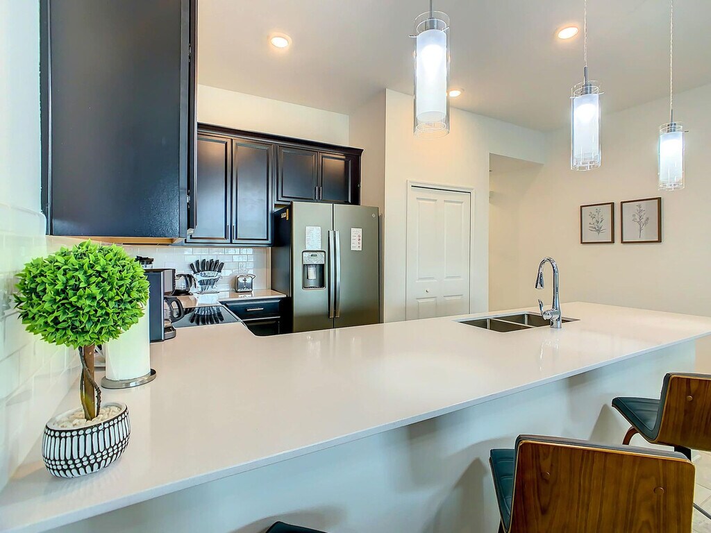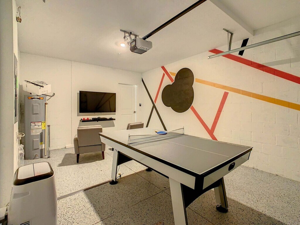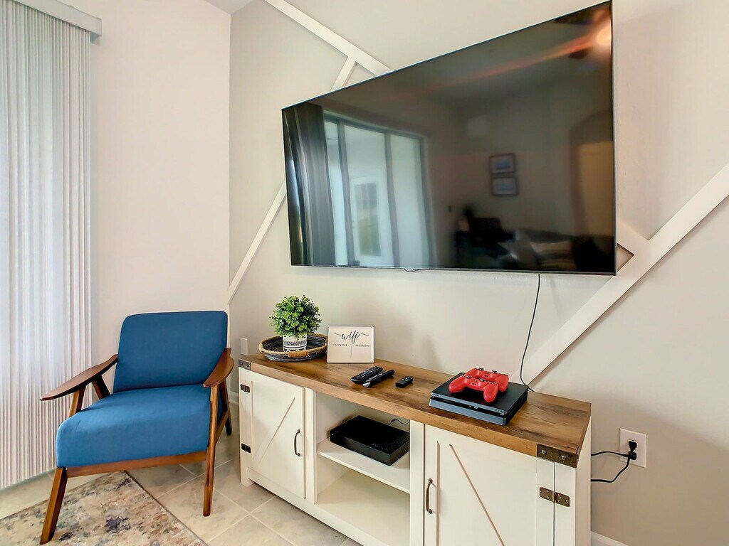 Experience the excitement of the new Epic Universe park this May 22nd, and feel at home in this fantastic vacation condo at Champions Gate. This spacious property, inspired by the sun of Florida and the magic of Walt Disney World, offers a premium location and elegant style for an unforgettable family vacation. The condo features a fully equipped kitchen, AC, and a laptop workspace, along with thematic rooms and a game room with a Mickey Mouse theme and console. Enjoy the comfort of a king-size bed in the master bedroom, a full-size bed and bunk bed in the second bedroom, and a sofa bed in the living room, all equipped with Smart TVs. Indulge in full complimentary access to all the wonderful resort amenities, including the clubhouse and water park. Enjoy the gym, heated swimming pools, lazy river, splash pad, kids craft play-zone, volleyball and basketball courts, tennis courts, and a family cinema. Some amenities, such as the spa center, golf, and restaurant, may require an additional fee. The main clubhouse Oasis Club is just a 7-minute drive away, and a recently opened second clubhouse offers a pool, water slide, mini golf, event stage, bar, hammocks, and tiki cabanas. Optional services are available for an extra cost, including pack and play, high chair, early check-in, and late check-out. Please inquire about availability before acquiring any service. Located in Champions Gate, this condo is just minutes away from major attractions like Disney World Magic Kingdom, Disney Hollywood Studios, and Universal Studios. With easy access to outlets, supermarkets, and local restaurants, you'll have everything you need within reach. Transportation options like Uber and Lyft are readily available, and the Champions Gate Golf Course is only a mile away. Guests must be at least 18 years old to book a reservation. No unregistered guests, smoking, or pets are allowed inside. The property is exclusively for vacation use, and filming or use as a warehouse is not permitted without prior authorization. Guests are expected to take care of the home as their own. To access the resort, guests must share a guest list to create and share QR codes. Essentials are provided for the first night only, and the condo has a side entry. The condo includes a laptop workspace and high-speed internet, making it remote work-friendly. A laptop computer is not included.