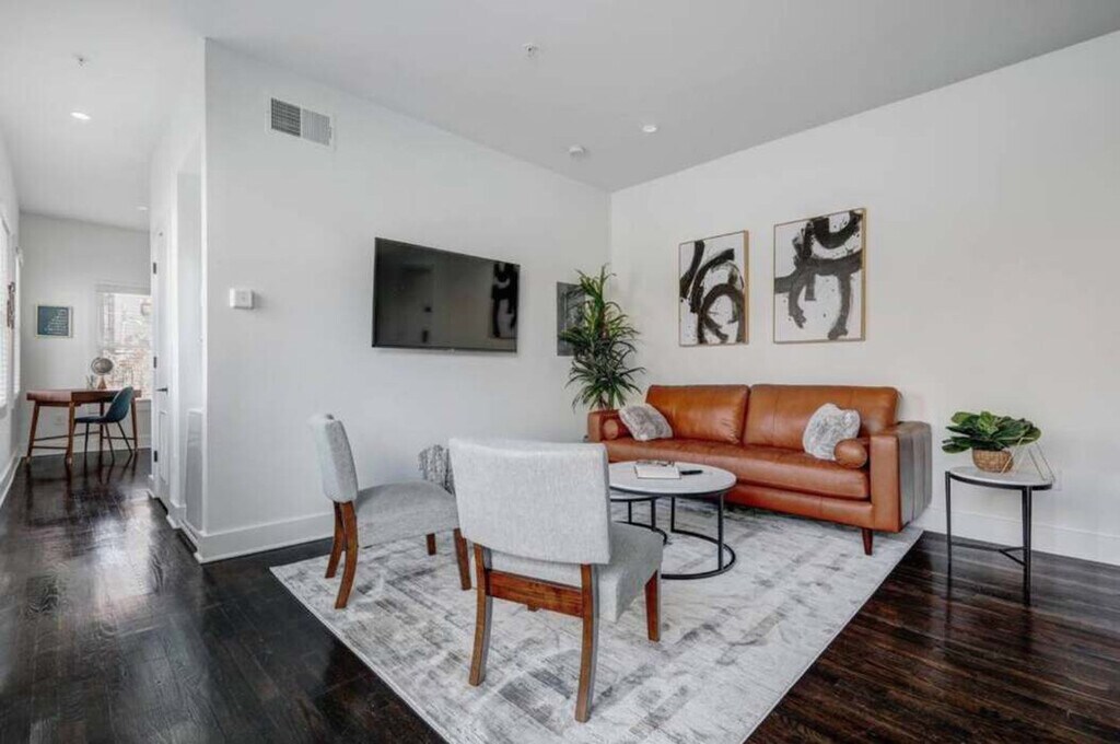 Feel at home in this professionally furnished apartment in the heart of Midtown Atlanta, designed for comfort, convenience, and style. This top-floor apartment features a private balcony. This apartment offers modern features with a prime Midtown location. Inside, you’ll enjoy a fully equipped kitchen with brand-new appliances, cookware, dishes, and utensils, as well as an in-unit washer and dryer. Additional comforts include air conditioning, high-speed Wi-Fi, and a dedicated living area. The apartment features hardwood floors. Paid parking may be available in the lot behind the building on a first-come, first-served basis. Street parking is also available, but please follow all posted city signs and restrictions. Guests are responsible for any tickets, towing, or booting. Enjoy Midtown’s vibrant lifestyle with a 94 Walk Score. Dining, shopping, and entertainment are all just steps away, including Zocalo, The Lawrence, Cypress Street Pint and Plate, Sweet Hut Bakery & Café, plus Colony Square restaurants. Essentials such as Publix, Whole Foods, Starbucks, CVS, and SAVI Market are nearby. Arts & Culture include the Fox Theatre, Piedmont Park, High Museum, and Margaret Mitchell House minutes away. Nightlife options include Bar Margot, The Lawrence, Vortex, Fadó, and Taco Mac, all close by. The Midtown MARTA station is within walking distance for easy city access, and Hartsfield-Jackson Atlanta International Airport is about a 15-minute drive. Quiet hours are from 9 PM to 8 AM. A warning will be issued for noise complaints; a second complaint may result in removal from the property without refund. Smoking is strictly prohibited inside the unit, in common areas, and on the property. Parties, events, and disruptive behavior are not permitted. Pets are not allowed. Do not move furniture, décor, or appliances. Tampering with Wi-Fi routers, smart devices, security cameras, or locks is strictly prohibited. The host reserves the right to cancel any reservation without refund if there is evidence of house rule violations, fraudulent activity, or behavior that threatens the safety, property, or quiet enjoyment of other residents. Includes a large desk ideal for remote work or study. [SI]