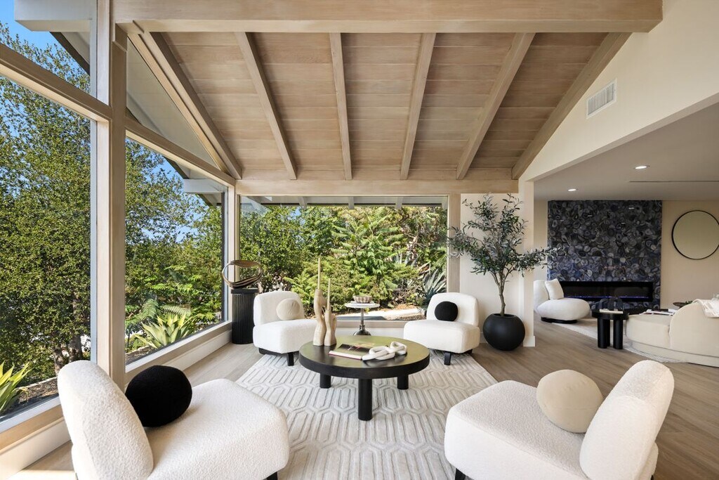 Welcome to your new home in the heart of From the moment the automated gates open, The Sky Estate at 9425 Gierson feels less like a residence and more like a private retreat in the clouds. A sculpted drive curves past a detached three-car garage, flanked by mature olive and willow trees, specimen succulents, and native cacti that define the California modern landscape. As you ascend the driveway, the city disappears and the sky opens up. The home's glass-and-IPE-clad faade crowns the ridge, cantilevered above the canyon to capture every sunset. Inside, a vaulted formal living room greets you with 15-foot ceilings and floor-to-ceiling windows framing panoramic mountain and valley views as if the sky were part of the decor. European wide-plank oak floors extend into an open-concept dining area and chef's kitchen, outfitted with Italian cabinetry, a quartz waterfall island, and a full Thermador suite. A patio off the kitchen encourages seamless indoor-outdoor living under open skies. The main level also features a junior en-suite for guests or multigenerational living, a mudroom, powder bath, laundry area, and a lounge/rec room with continued canyon views. Floating Brazilian stairs carry you to two secondary bedrooms and a breathtaking primary suite, where mornings begin with sunrises over the ridgeline. The spa bath includes a freestanding tub, dual rain showers, and custom wardrobe storage.Outdoors, the estate unfolds like a hillside resort, a pool, built-in BBQ, putting green. Steps lead up to a sky-deck and firepit with commanding 270-degree city-light vistas. Engineered for modern luxury with dual-zone HVAC, tankless water heater, 400-amp service, EV charging, and Low-E glazing, The Sky Estate at 9425 Gierson offers a rare sanctuary, ready to, CA! This charming property is ideally situated near a variety of fantastic restaurants and a convenient department store, offering you all the essentials just minutes away. Plus, the UCLA West Valley Medical Center is a mere 13-minute drive from your doorstep. This rental features comfortable living throughout, complete with central heating and air conditioning to keep you cozy year-round. A ceiling fan adds to your comfort, allowing for breezy, relaxing evenings at home. Please note that utilities such as gas, electricity, cable, internet, water, heat, trash service, and yard maintenance are not included in the rent. Don’t miss the chance to experience living in this wonderful location. Contact us today to schedule a viewing and take the first step toward making this lovely Chatsworth property your new home!