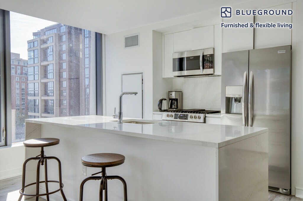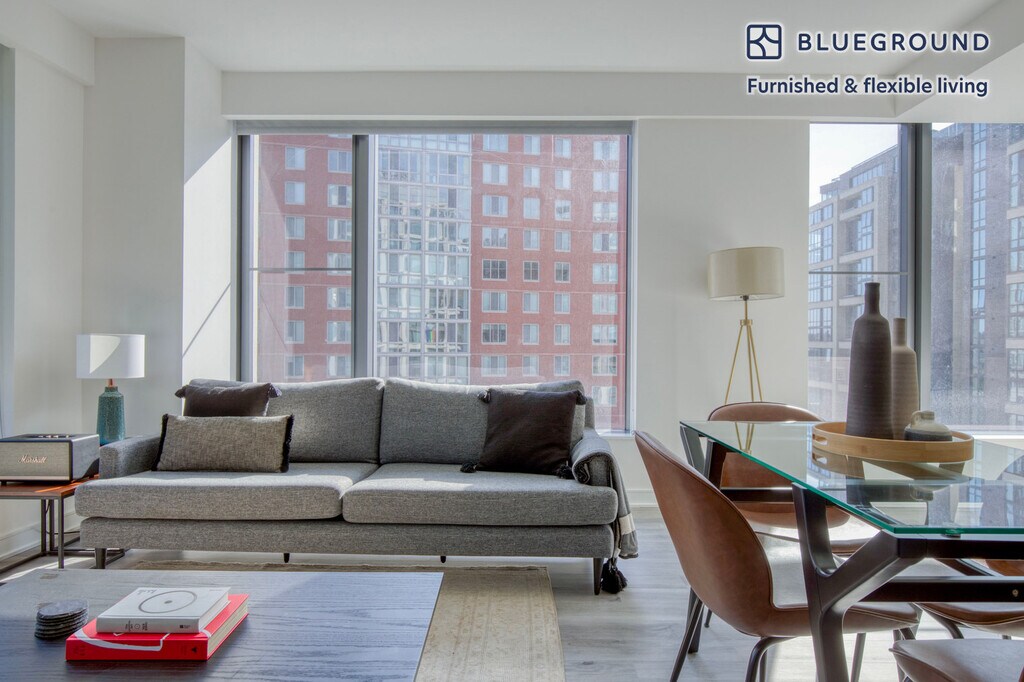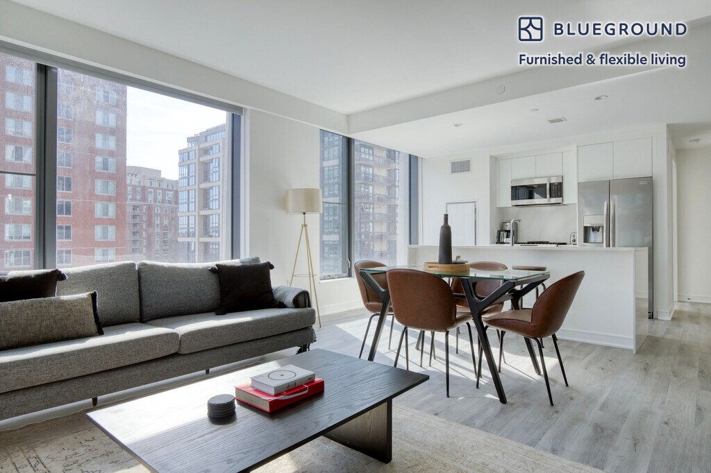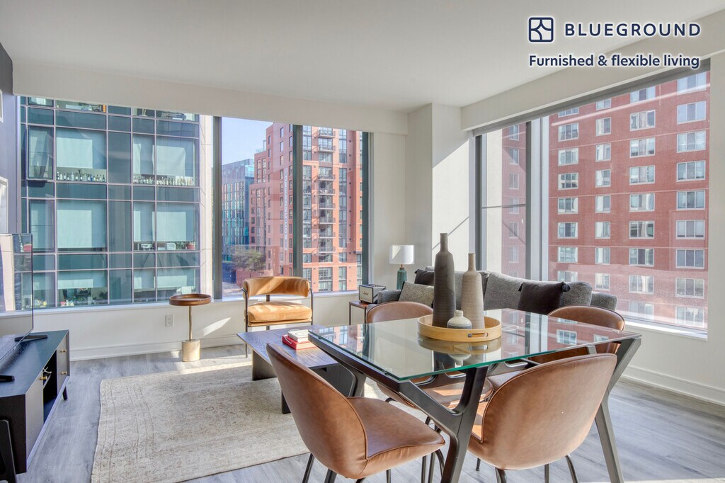 Show up and start living from day one in Washington, D.C. with this lovely two bedroom Blueground apartment. You’ll love coming home to this thoughtfully furnished, beautifully designed, and fully equipped Capitol Riverfront home. (ID #WDC887) The advertised rate of $3,780/month is the lowest available price, based on a 6 month(s) and 6 day(s) stay with a move-in date of October 1, 2026. If you’re looking for a 1-year stay, the rate is $4,370/month. Rates vary depending on the duration of stay, season, and other parameters. For exact pricing and additional pricing components, please visit our website and enter your desired move-in and move-out dates. The rate is applicable when billed upfront; it can be higher if billed in multiple payments. Brokers are welcome to reach out. Were you looking for an unfurnished lease? Try Blueground instead and upgrade from unfurnished to furnished living: - Furnished at rates comparable to unfurnished - No setup or furniture costs - save thousands - Move-in ready - save time, just bring your suitcase Designed with you in mind Thoughtfully designed with bespoke finishes, modern furnishings, and a fully equipped kitchen, you’ll enjoy that “I’m home” feeling with this Blueground apartment. Whether you’re lounging in your sophisticated living room streaming the latest and greatest entertainment on the smart TV or premium wireless speaker, or getting some well-earned rest on the superior quality mattress with fully stocked linens, you’ll fall in love with everything this Capitol Riverfront apartment has to offer. This apartment also offers in-apartment laundry. Sleeping arrangements King Bed, 70.8in/180cm Queen Bed, 63in/160cm Amenities Building amenities unique to this two bedroom apartment include an on-site: - Doorman - Dryer - Elevator - Swimming pool - Washing machine - Lounge - Library - Media room - Pets allowed Arrival and ongoing support The entire apartment is yours to enjoy! Throughout your stay, you’ll have access to our Client Experience team through the Blueground App. You can schedule additional cleanings, submit maintenance requests, and view our neighborhood recommendations with just a few taps. We’ll share all details upon confirmation of your stay. Other things to note Building amenities may have an extra cost. This Blueground apartment has flexible lease options, allowing you to book it for one month, a year, or more. Pets are welcome, though weight limits and breed restrictions apply and may incur fees. We take great pride in ensuring every photo displayed is shot in our own units with our actual furnishings. That said, we regularly refresh our decor and furniture arrangement, which may differ from what’s pictured. [SI]