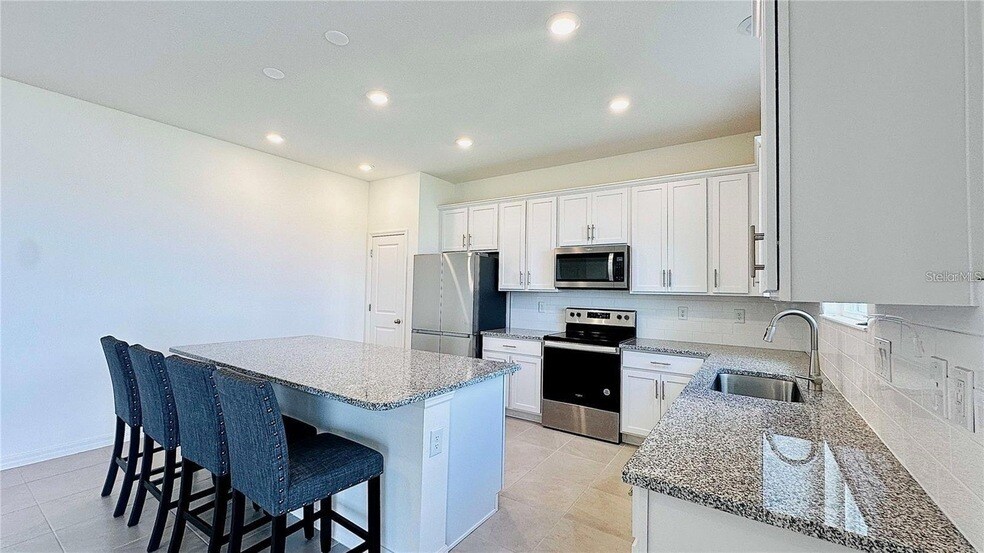 This stunning 1-year-old home has everything you could want! Situated on a rare water-view lot, it features 9-foot ceilings, a first-floor bedroom with its own full bathroom, a spacious great room, and an extended covered patio with no neighbors behind. The kitchen is a chef s dream, equipped with a large eat-at island, 42-inch upper cabinets topped with crown molding, granite countertops, a brick-laid subway tile backsplash, a pantry, and a stainless-steel Whirlpool appliance package. Upstairs, you ll discover three additional bedrooms, each with its own closet, plus a dedicated laundry room. The primary suite offers a generous walk-in closet, and its attached bathroom includes a linen closet, a raised dual-sink vanity with granite countertops, and a walk-in shower with tile surround. The community provides easy access to US-301, I-75, and I-275, making commuting a breeze. Don t miss this incredible opportunity!