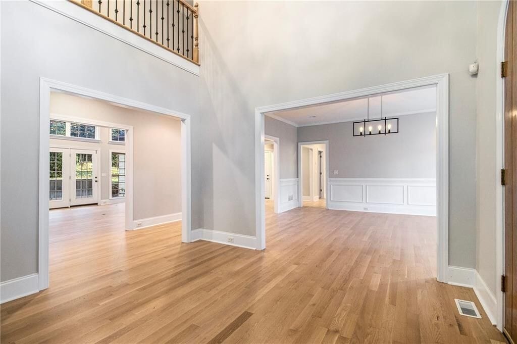 Experience refined luxury on a quiet North Buckhead/Sandy Springs cul-de-sac. Set on over an acre in the highly sought-after Riverwood International Charter district, this executive residence lives like a private estate—grand in scale yet designed for everyday comfort. A dramatic vaulted living room with a fireplace and a wall of windows introduces the home with elegance and abundant natural light. The flow continues into a formal dining room and a gourmet kitchen featuring rich wood cabinetry, high-end stainless steel appliances, granite countertops, and a generous eat-in area. Ten-plus-foot ceilings and gleaming hardwood floors enhance the sense of sophistication throughout. The main level offers a serene primary suite with a newly renovated, spa-inspired bath, along with a versatile flex room ideal for a nursery, home office, or study. The two-story great room opens through double French doors to a private backyard patio, creating a seamless connection between indoor and outdoor living. Upstairs, the home provides six spacious secondary bedrooms, five full bathrooms, and a media room—perfect for families, guests, or multigenerational living. The property sits on a beautifully wooded lot that feels peaceful and secluded while remaining close to everything Atlanta has to offer. With convenient access to Downtown, Midtown, Lenox, Westside, and the Perimeter, as well as the new Windsor Meadows Park/Greenspace, the location is exceptional. Neutral paint, new carpet, and a thoughtful layout make this large home both luxurious and practical. This is a residence that delivers presence, comfort, and timeless appeal—an opportunity to live in a space that truly feels like a modern palace.