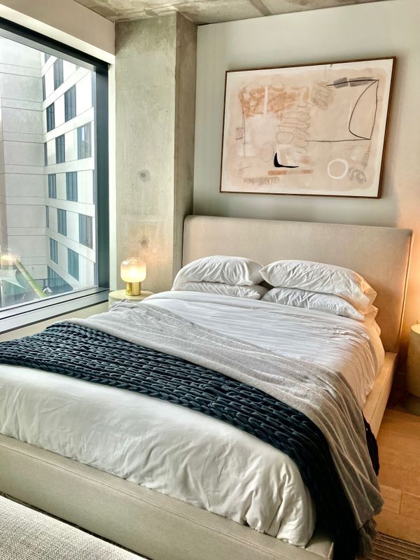 This is a one bedroom residence at Serif, a luxury condo high-rise in San Francisco's Mid-Market neighborhood. The unit features exposed concrete ceilings, top of the line finishes and appliances. The aesthetic is modern and urban. Flexible floor plan include open kitchen and living space that is perfect for relaxation and entertaining. A NanaWall separates the living room and bedroom. Washer and dryer are provided in unit. Property also has fitness and rooftop amenities as well as lobby attendant on duty 24-7. Additional storage available upon request. Location is across the street from IKEA and a stone's throw away from 4th Street BART & Muni. You will be a short stroll away from delightful dining options, Union Square and Salesforce Park, providing you with both vibrant city life and serene spaces to unwind. Renter is responsible for gas & electric and WIFI. Last month's rent due at signing. No smoking allowed. Landlord's criteria: Gross Income per month must be 2.5x rent. Credit score: 700+