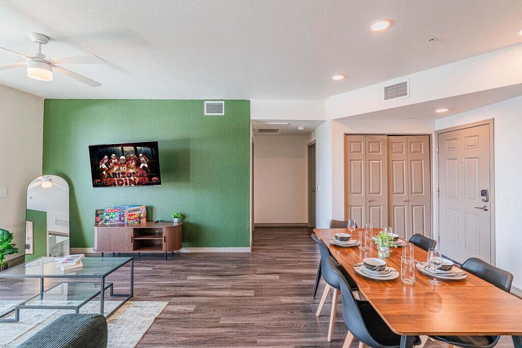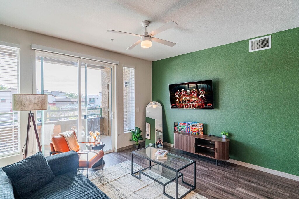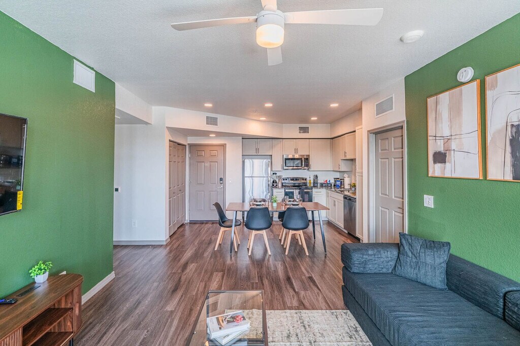 The advertised rate of $2,065/month is the lowest available price, based on a 1 month(s) stay with a move-in date of June 28, 2026. Rates vary depending on the duration of stay, season, and other parameters. For exact pricing and additional pricing components, please visit our website and enter your desired move-in and move-out dates. The rate is applicable when billed upfront; it can be higher if billed in multiple payments. Feel at home in this bright and stylish 2-bedroom apartment in the heart of Glendale, located on the 2nd floor. Please note that there are no elevators at this property, so guests need to walk upstairs. This upscale home blends socially and environmentally responsible design with standout service and premium amenities. The sleek, open-concept layout connects the kitchen, dining, and living areas, creating a bright, modern flow. The living room features a sofa bed and chair, a 4K 55" HDR Smart TV, and a coffee table. The fully equipped kitchen includes a microwave, stove, oven, refrigerator/freezer, dishwasher, coffee maker with coffee essentials, electric kettle, sink with hot and cold water, glasses, silverware, pots and pans, and a dining table with chairs. The bedroom features a queen-size bed with pillows, linens, and sheets, an office desk and chair, and reading lamps. Parking is available on the premises, and instructions will be given at check-in. Pets are allowed depending on size or if they are service animals, and an additional cleaning fee of $20 per pet per night is required. There is a 2 pet maximum and only cats/dogs are allowed. Restrictions: Pet combined weight limit up to 80 pounds. The following breeds (purebred and/or any mixed form) are currently restricted: Akita, American Bulldog, Chow Chow, Doberman, German Shepherd, Husky Breeds, Malamute, Pit Bull Breeds, Presa Canario, Rottweiler, Staffordshire Terrier, St. Bernard. You’ll be just minutes from some of the best dining, shopping, and entertainment in the area, with quick access to top attractions. All guests must be 23 years old and above. If you are found to have brought pets without prior notification, there will be a $500 fee. There are noise monitors installed in the apartment that measure the noise levels in decibels, and if tampered with, there will be a fee. There are security cameras in the hallways for security. [SI]