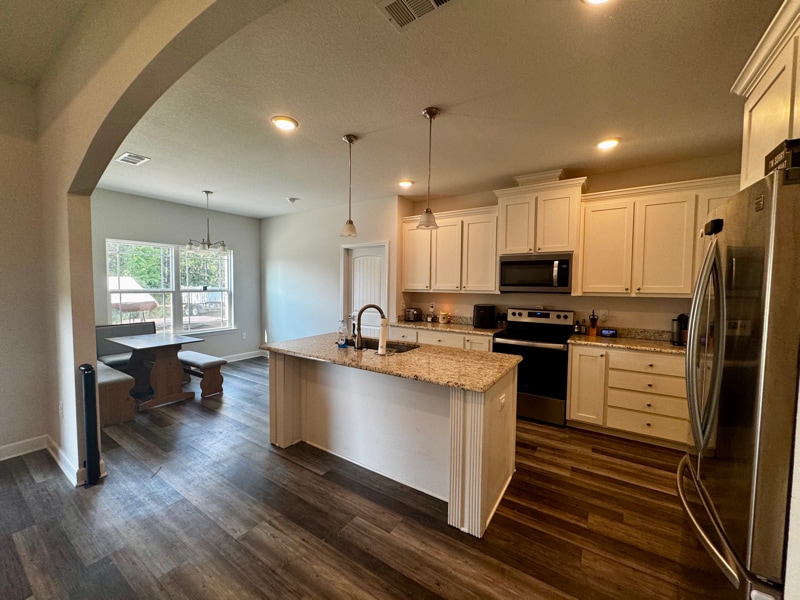 Property Id: 1586275 Get ready to move in by November or possibly sooner to this stunning modern farm-style house! It features granite in the kitchen and master bathroom, a Hardie/brick exterior, and sits on a 1-acre lot surrounded by new construction homes, with no HOA. The house also includes a tile master shower, 2-car garage with a smart/insulated garage door and included 240V outlet already installed for EVs or other projects, and a front door with double sidelights and a glass transom above. The living area has a 10ft plate height with a double tray going up to 12 feet in the living room. The flooring is LVP with carpet in the bedrooms. Pest control, termite treatment, and minor landscaping are included. Additionally, stainless Whirlpool appliances are provided, including a microwave range vent combo, dishwasher, washer and dryer. Wired for fiber optic internet. The spacious back porch comes with an extended patio, perfect for grilling, and a fire pit is included.