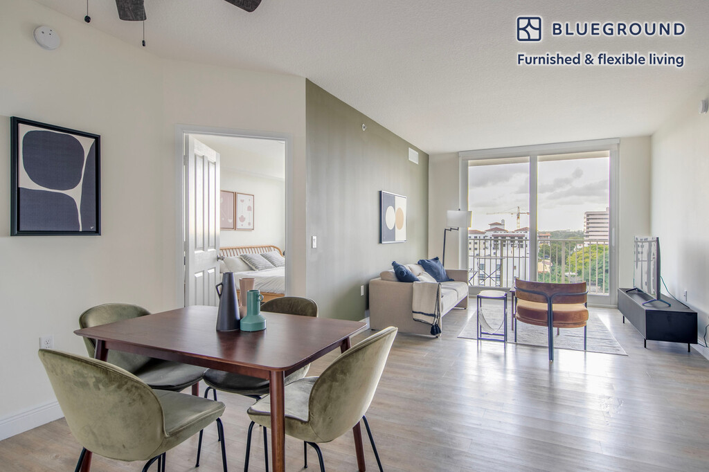 Ofrecemos precios personalizados por cualquier duración. Las tarifas pueden variar según las fechas exactas de mudanza. La tarifa para esta casa comienza en $3,150* / mes. Visita nuestro sitio web e ingresa tus fechas de estadía para ver los precios actualizados para tu reserva específica. *El precio cotizado es: (1) según la mudanza en el primer día en que el apartamento está disponible, (2) aplica solo si se factura por adelantado, puede ser más alto si se factura en múltiples pagos, (3) exclusivo de cualquier impuesto o servicio público. Descubra lo mejor de Miami con este apartamento Coral Gables de dos dormitorios. Será fácil simplemente presentarse y comenzar a vivir en este moderno apartamento amueblado en Blueground con su cocina totalmente equipada, una elegante sala de estar y nuestro dedicado servicio de asistencia en el terreno. (ID #MIA83) Diseñado pensando en usted Magnífico mobiliario, cocina totalmente equipada, televisor inteligente y altavoz inalámbrico premium son solo algunas de las comodidades que encontrará dentro de este apartamento de dos dormitorios. Con una ubicación ideal en Miami, también encontrará mucho para adorar al aire libre. Cuando esté listo para relajarse, estará encantado de descubrir que todos los dormitorios de Blueground cuentan con colchones de calidad superior, sábanas de lujo y toallas acogedoras. Nosotros nos encargamos de todo para que usted pueda simplemente presentarse y comenzar a vivir. Este apartamento también ofrece lavandería en el apartamento. Servicios para dormir con cama King, cama Queen de 70,8 pulgadas/180 cm , comodidades de 63 pulgadas/160 cm Los servicios del edificio exclusivos de este dormitorio incluyen: - Área de barbacoa - Portero - Secador - Ascensor - Gimnasio - Piscina - Lavadora - Lounge - Estacionamiento - Se permiten mascotas ¡ Llega y asistencia continua ! ¡Todo el apartamento es suyo para disfrutar! Un miembro del equipo de Blueground te dará la bienvenida personalmente o te dará instrucciones de auto check-in. Durante su estancia, tendrá acceso a nuestro equipo de experiencia del cliente a través de la aplicación Blueground. Puedes programar limpiezas adicionales, enviar solicitudes de mantenimiento y ver las recomendaciones de nuestro vecindario con solo unos pocos toques. Compartiremos todos los detalles tras la confirmación de su estancia. Con una ubicación ideal Este apartamento amueblado está ubicado en el elegante Coral Gables, un codiciado vecindario ubicado a varios kilómetros al sudoeste del centro de Miami. La zona cuenta con una increíble arquitectura del renacimiento mediterráneo. También hay una escena gastronómica ingeniosa, con cocina fusión servida en los restaurantes del hotel Art Deco y en los lugares más famosos, así como en muchos bares elegantes. Coral Gables es el escenario de los vastos jardines botánicos de Miami, con especies de plantas de todo el mundo y el Lowe Art Museum. Ambas atracciones son una excelente manera de pasar un sábado sin viajar lejos de casa. Otras cosas a tener en cuenta Las amenidades del edificio pueden tener un costo adicional. Este apartamento de Blueground tiene opciones de arrendamiento flexibles, lo que te permite reservarlo por un mes, un año o más. Las mascotas son bienvenidas, aunque se aplican límites de peso y restricciones de raza y pueden incurrir en cargos. El estacionamiento se ofrece según la disponibilidad y está sujeto a un cargo. Nos enorgullecemos de asegurarnos de que cada foto que se muestra se tome en nuestros propios apartamentos con nuestro mobiliario real. Dicho esto, actualizamos regularmente nuestra decoración y disposición de muebles, que pueden diferir de lo que se muestra en la imagen. También tenga en cuenta lo siguiente: - Se trata de un edificio protegido equipado con un portero/conserje en todo momento