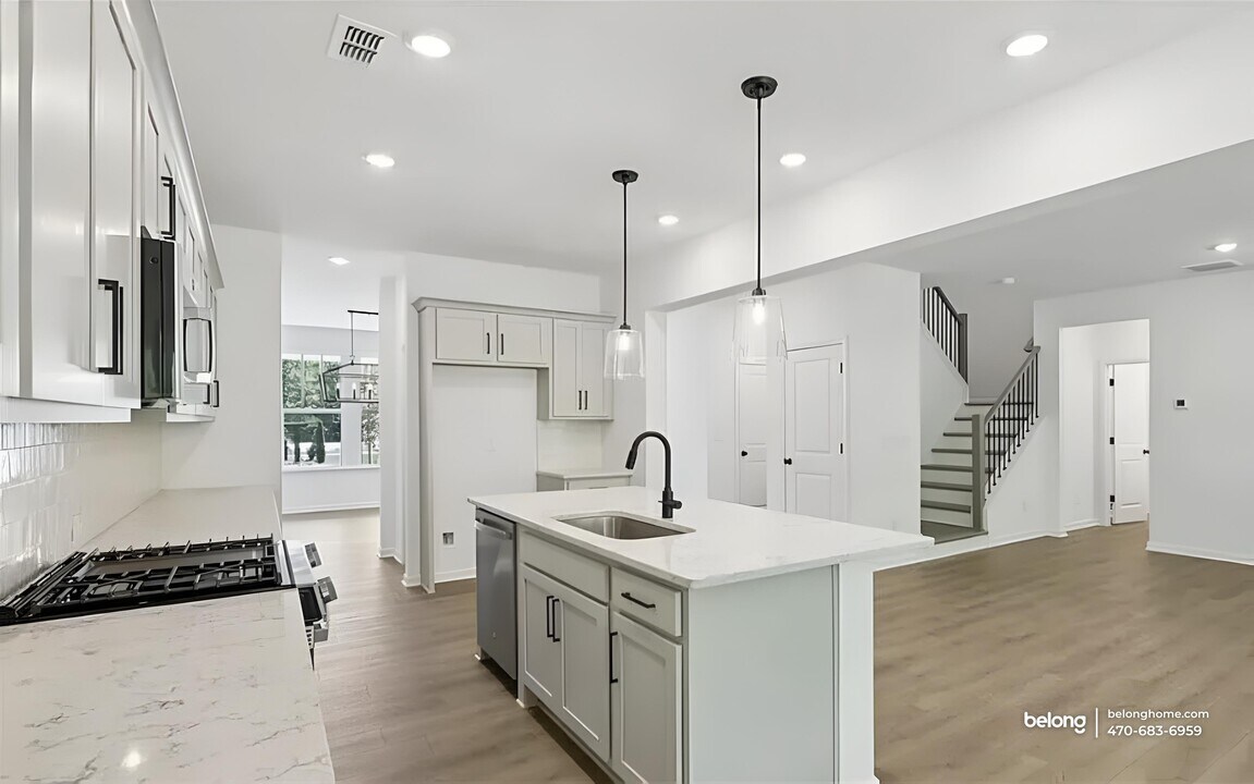 This brand-new home offers generous scale and modern comfort across 3,200 square feet of thoughtfully finished living space. With 5 bedrooms and 4 baths, the layout supports flexibility for work, rest, and gathering, all wrapped in a crisp, newly built setting. Living areas feel open and bright, with wide-plank-style flooring, recessed lighting, and clean architectural lines that keep the space feeling airy and adaptable. A ceiling fan adds comfort, while the open flow allows living and dining zones to connect naturally to the kitchen. The kitchen anchors the main level with ample cabinetry, a large center island, and pendant lighting that defines the space while keeping sightlines open. Bedrooms are well distributed, giving everyone room to settle in, while four full baths feature modern vanities, sleek fixtures, and a fresh, uncluttered look that reflects the home’s new construction. Set in Dawsonville, daily errands and weekend plans are close at hand. Grocery options like Kroger and Publix are nearby, along with shopping at North Georgia Premium Outlets. Outdoor recreation comes easy with Amicalola Falls State Park, local trails, and parks offering scenic escapes. Access to GA 400 supports commuting and connections to Cumming and the greater North Georgia area, while nearby cafes and restaurants add everyday convenience. *Fireplace is for decorative use only and cannot be used without consent from Belong. *Our homes come as-is with all essentials in working order. Want upgrades? Request it through the Belong app, and our trusted pros will take care of the rest!