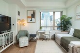 Feel at home in this luxurious 1-bedroom penthouse in Boston, offering breathtaking views of the skyline and Chinatown. The apartment features 1 full bathroom and access to a gym and rooftop. The building has 2 elevators. This luxury apartment is equipped with a full kitchen, washer and dryer, and lightning-fast Wi-Fi. Residents will enjoy beautiful design features such as gourmet kitchens with Shaker-style birch cabinets, tile floors and granite countertops, luxurious bathrooms, and expansive windows. The master bedroom features a deluxe arrangement of two large twin beds that can be combined to turn into a king-size bed, custom linens, a fluffy duvet, plush pillows, two night tables with lamps, a clock radio, a dresser, and spacious closets. The living room includes a sofa day bed that turns into 2 full beds, a folding bed (upon request), a side chair, an entertainment center with a flat panel LCD TV, a DVD/VCR player, a CD stereo system, a dining area with seating for three, and a work desk with a lamp. The gourmet kitchen is fully equipped with everything you need, including dishes, glasses, cutlery, pots, and pans. It features Shaker-style birch cabinets and tile floors, granite countertops, and full-size Energy Star GE stainless steel appliances (four burner stove, oven, microwave, dishwasher, and side-by-side full-size refrigerator with ice maker), a toaster, and a coffee maker. Coffee, tea, and sweeteners are provided. Property amenities include a club room with video conference and caterers’ kitchen, meeting rooms with a 58" LCD screen with surround sound, a mezzanine terrace with a garden on the 11th floor, a garden with Wi-Fi, a beautiful lobby with museum art, and magnificent architectural and interior design. The building was constructed with sensitivity to energy consumption and environmental issues, including natural ventilation and extensive natural light. A baby crib and high-chair are available. Nestled in the heart of Boston, this apartment in the Boston Theater District places you in the vibrant Chinatown neighborhood. Immerse yourself in a rich cultural experience with authentic cuisine, bustling shops, and unique cultural attractions just steps away. Explore the area's diverse dining scene, from traditional dim sum restaurants to modern Asian fusion eateries. You'll find a variety of shops offering unique gifts, groceries, and traditional goods. With convenient access to public transportation, you can easily explore other parts of Boston, including the historic Freedom Trail and the trendy shops and restaurants of Downtown Crossing, both within a short distance. The apartment offers excellent access to public transportation. The MBTA subway system (Red, Orange, Green, and Blue lines) is easily accessible, with multiple stations within walking distance, providing convenient connections to all parts of Boston and surrounding areas. Boston Logan International Airport (BOS) is approximately a 15-20 minute taxi or ride-sharing service ride, depending on traffic conditions. Walking to nearby attractions like Chinatown and the Financial District is also very feasible, making this apartment an ideal base for exploring Boston. Quiet times are from 9pm to 9am. If additional guests are accepted for an extra fee, violators will be asked to leave immediately with no refund. All guests are required to submit a government photo ID and email address prior to access. Smoking violations will incur a $1000 fee. If you need a folding bed, you need to provide at least 24 hours notice prior to your arrival. Each guest has 1-2 hours to check the apartment and send a message in case of anything missing or unclean so that it can be verified and addressed to ensure a smooth check-in process and comfortable stay. Any requests after this time frame will be postponed until the next day. Please close and lock all windows and doors when you leave. All guests over 18 are required to submit a copy of their IDs. Do not keep any food in the bedroom. All food and beverage leftovers must be trashed outside the apartment. Includes a dedicated workspace. [SI]