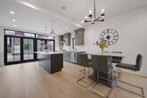 Feel at home in this modern jungle-themed apartment in Columbus, Ohio, boasting 3 bedrooms and 3.5 bathrooms within a spacious 2,900 sq. ft. This apartment is centrally located downtown. This apartment features upscale decor, a bright white interior, and large windows. The first floor includes a full kitchen with quartz countertops and premium appliances. A bonus kitchenette on the second floor features a sink and mini-fridge. Enjoy the private covered terrace with a smart TV, a washer and dryer, and a 2-car garage with free parking. Pets are welcome for a fee of $40 per pet per night. Ideally located near the Short North, Columbus Convention Center, and Nationwide Arena, this apartment is close to the city's events, dining, and nightlife. It's a short walk to the Short North District, a short drive to the Greater Columbus Convention Center and Nationwide Arena, and close to Kroger Food Market, downtown Columbus, and Ohio State University campus. The CMH Columbus John Glenn Airport and Easton Town Center Shopping Mall are also within easy driving distance, with easy access to major highways and COTA lines. City and neighbor noise is possible due to the central downtown location and shared wall with a neighboring unit. White noise machines and fans are provided in every room. Quiet hours are from 9 p.m. to 7 a.m. No loud music is allowed at any time. Breaking any of the house rules will result in a charge of $500 each, subject to a charge per occasion and per broken rule separately. No parties, small gatherings, or events are allowed. Smoking, marijuana, firearms, illegal substances, or any illegal activity are prohibited on the property. No additional unregistered guests are allowed. Tampering with exterior surveillance, noise monitors, and smoke sensors will lead to immediate cancellation with no refund, as well as a $300 violation charge. Any late check-outs will result in an additional charge of $100. Includes a dedicated workspace. Registration Number: 20242734 [SI]