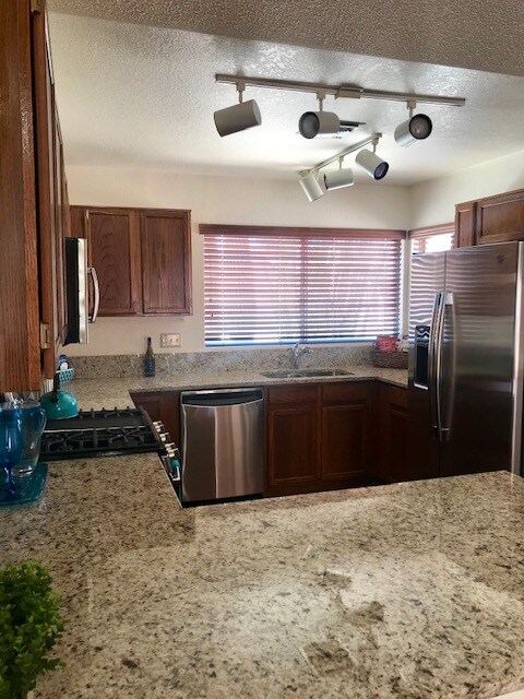 Property Id: 104745 Beautifully renovated 03 bedrooms, 02 full bathrooms home in the desirable North Ranch Community of the NW Tucson. This bright, open floor plan features vaulted ceilings, new flooring throughout, and a stunning kitchen complete with granite countertops and stainless steel appliances. The spacious primary suite includes a private bath and walk-in closet, plus a dedicated laundry room for added convenience. Enjoy a new AC and roof, an attached two-car garage, and low-maintenance landscaping. Located across from a large park and close to the community pool, spa, clubhouse, and sports courts, this home offers comfort and lifestyle in one perfect location.