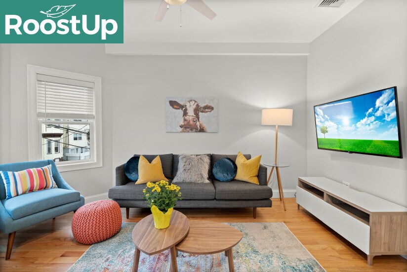 No broker fee! Only last month deposit needed. RoostUp is offering a beautifully renovated private bedroom with ensuite bath in East Boston. Less than a 10 minute walk to Airport MBTA Blue Line train station in a 4 bedroom/3 bath apartment. Check out RoostUp's 100+reviews averaging 4.8-stars on Google and Facebook. Completely furnished all-inclusive concept from RoostUp. Fully-equipped kitchen included with granite countertops, new appliances and 4K Smart TV. RoostUp amenities include all utilities, high-speed WiFi, in-unit laundry, central air, and bi-weekly cleaning. Here's what is included: Furnished private bedroom with private ensuite bath ------------------------------------------------------ - New bed and high quality mattress - Matching dresser with desk, lamp and chair - Full length mirror and coat rack - Custom closet system with built in storage Stocked kitchen and furnished living area ------------------------------------------ - Renovated kitchen with new countertops & stainless steel appliances - Kitchenware, dishes, glassware and flatware - Fully furnished including sofa, chairs, coffee table - 4K Smart TV Utilities & Cleaning ------------------- - All utilities (gas, electric, wifi) - Bi-weekly professional cleaning - 1Gbps WiFi - Keyless smartphone locks - Central A/C - Free in-unit laundry - Weekly trash and recycling removal - Included for one flat monthly fee RoostUp never charges a broker fee or security deposit. Only First and Last Month Rent due at lease signing. Sorry, no pets. The RoostUp application process includes a credit and background screening. International applicants can submit copies of valid passport & visa. Please note there is an application process that includes a credit and background check.