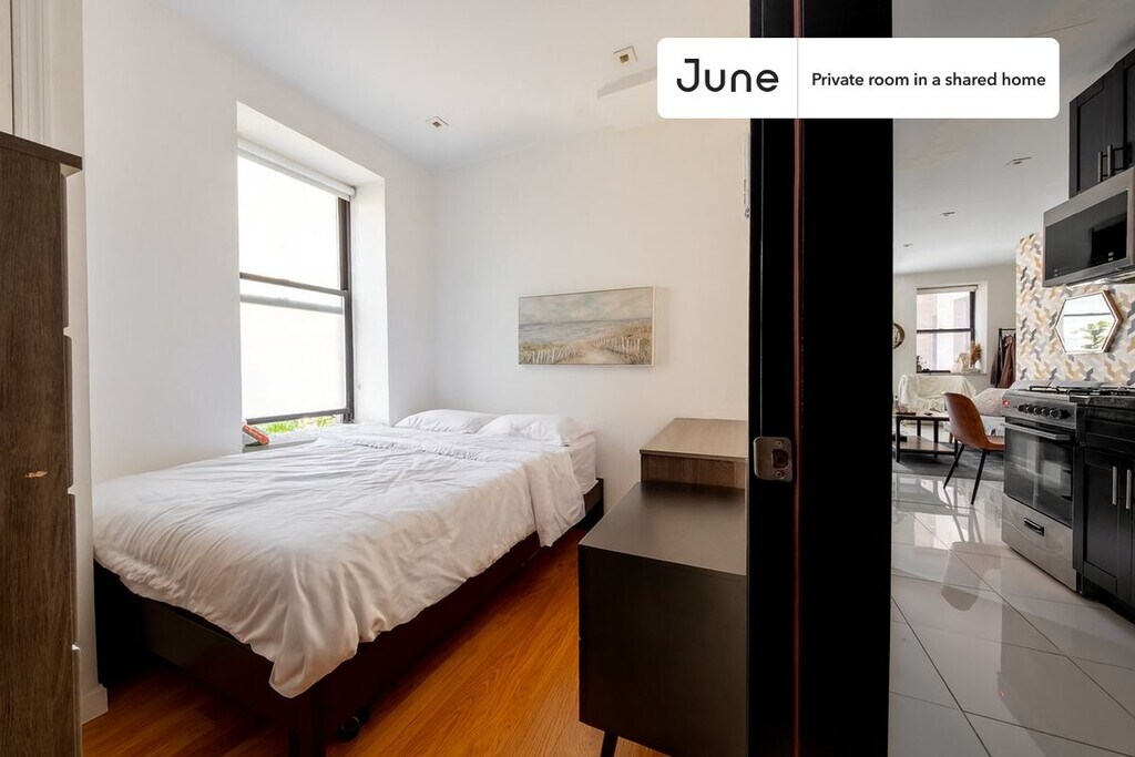 Room for rent: PLEASE NOTE: This is a private room in a shared apartment. You will have your own bedroom and shared common areas (kitchen, bathroom, etc.) with other residents. Full bedroom in a 3 bedroom / 2 bathroom apartment! This Full room in Central Harlem is available on a 12 month lease or a flexible short term (31 to 364 days) lease. You pick your custom start and end date. Monthly rent rate is determined by furnishing preference, move-in date and move-out date. Speak to a June representative for recommendations on the best stay duration for the lowest rate. Amenities of this home: Dishwasher, Furnished Common Areas, Wi-Fi - Paid separately (High-Speed), Guarantors Allowed, Dining area, Laundry in home (free), Wall-Mounted TV, Hardwood Flooring, Microwave, Refrigerator, Air conditioning | Central AC, also, this unit is conveniently located, several local parks, restaurants and bars are just minutes away. About June Homes: Welcome to the easiest rental experience of your life. Rent furnished or unfurnished apartments on a 12 month lease or a flexible short term (31 to 364 days). As a resident, you’ll have access to 24/7 support and monthly cleanings of the home’s shared spaces. Sign up now to apply online for your next home with June. Brokers welcome! Contact us for more details. Speak to a June representative for recommendations on the best stay duration for the lowest rate, and learn more about this home on the June website. Use this listing ID when speaking to June team: #1872 B