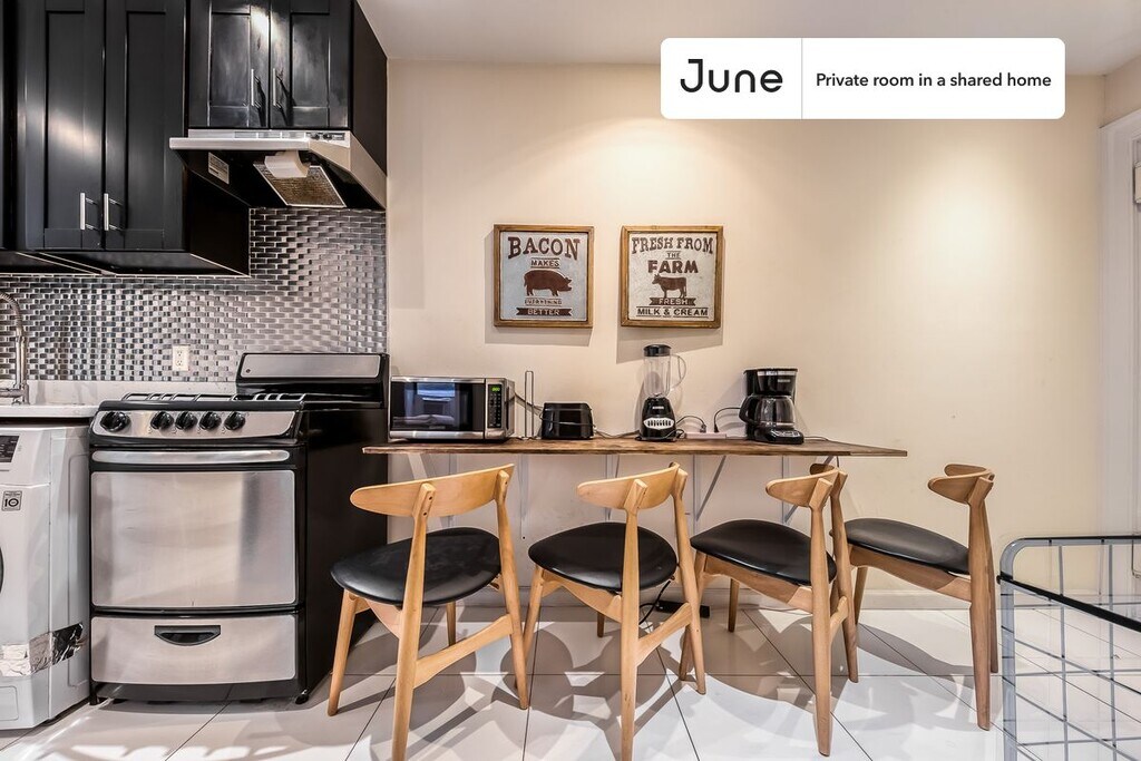 Room for rent: PLEASE NOTE: This is a private room in a shared apartment. You will have your own bedroom and shared common areas (kitchen, bathroom, etc.) with other residents. Full bedroom in a 4 bedroom / 2 bathroom apartment! This Full room in Central Harlem is available on a 12 month lease or a flexible short term (31 to 364 days) lease. You pick your custom start and end date. Monthly rent rate is determined by furnishing preference, move-in date and move-out date. Speak to a June representative for recommendations on the best stay duration for the lowest rate. Amenities of this home: Dishwasher, Furnished Common Areas, Wi-Fi - Paid separately (High-Speed), Guarantors Allowed, Dining area, Laundry in home (free), Wall-Mounted TV, Hardwood Flooring, Oven, Refrigerator, also, this unit is conveniently located, several local parks, restaurants and bars are just minutes away. About June Homes: Welcome to the easiest rental experience of your life. Rent furnished or unfurnished apartments on a 12 month lease or a flexible short term (31 to 364 days). As a resident, you’ll have access to 24/7 support and monthly cleanings of the home’s shared spaces. Sign up now to apply online for your next home with June. Brokers welcome! Contact us for more details. Speak to a June representative for recommendations on the best stay duration for the lowest rate, and learn more about this home on the June website. Use this listing ID when speaking to June team: #1865 C