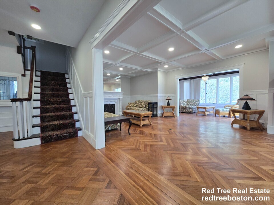 This beautifully renovated single family Colonial blends classic charm with modern updates. Original details like hardwood floors, moldings, fireplaces, and built-ins are complemented by updated kitchen and bathrooms. The spacious layout includes 5 bedrooms and 3.5 bathrooms, including a primary en-suite bathroom. Main living level features bright sun room, formal dining room, and giant living room. Other recent upgrades include new windows, insulation, gutters, and a new heat pump. Located steps from Jamaica Pond and the Emerald Necklace, with easy access to Boston’s top hospitals, universities, and parks. Garage and driveway parking included, making this rare offering as practical as it is impressive. Easy to tour. For all showing requests & questions on leasing - Contact Red Tree Real Estate by inquiring through this listing
