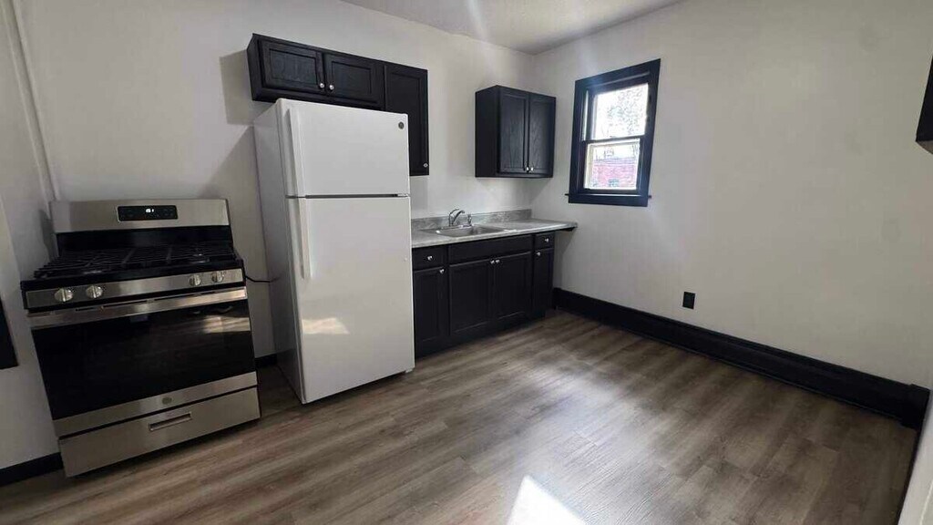 READY NOW! Very Large (APPROX 950 sq feet) second floor apartment. This unit has 2 very large bedrooms (1 huge and 1 very large) and a spacious living room. The kitchen has a refrigerator and a stove. The bathroom has a shower (no tub). Modern vinyl click flooring throughout the apartment. This apartment is in downtown Northampton very close to Joe's Pizza! Parking: Off street parking in the driveway for one car only. No Laundry on site: Laundromat .5 miles away. Owner pays for: water/sewer, trash, lawn care and snow removal. Tenant pays for: economical gas heat, hot water, and electricity. NO smoking. No pets firm. Lease: Year lease. First month’s rent and security deposit. Credit and background check required. LISTED BY TAYLOR REAL ESTATE SQ FOOTAGE APPROXIMATED