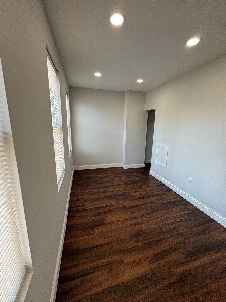 Extra large second floor room suite at the front of the house with private bathroom and a bonus room with exposed brick. Bonus room is private as well and has its own connecting door, making it perfect for an office or living room.3 windows in the bonus room and 1 window in the bedroom. The room suite for rent is in a 4 bed/5 bath rowhouse in Upper Fells. The rowhouse is located blocks from Patterson Park and gets plenty of natural light. The house has a large kitchen with new appliances and a fenced in private courtyard patio area in the rear of the house. Room has secured keyed entry and mini refrigerators. The Kitchen, hallways, laundry and back patio are the only shared common areas. Leases are month-to-month, but priority is given to tenants who plan to stay long-term. First month’s rent ($950) and security deposit ($500) required to move in ($1450 total). High speed internet additional $50 per month but is optional. There is a 1 tenant limit per room. Small trained pets are considered with $200 pet deposit. Close proximity to local bars and eateries. Walking distance to Johns Hopkins and public transportation. Video available on request.