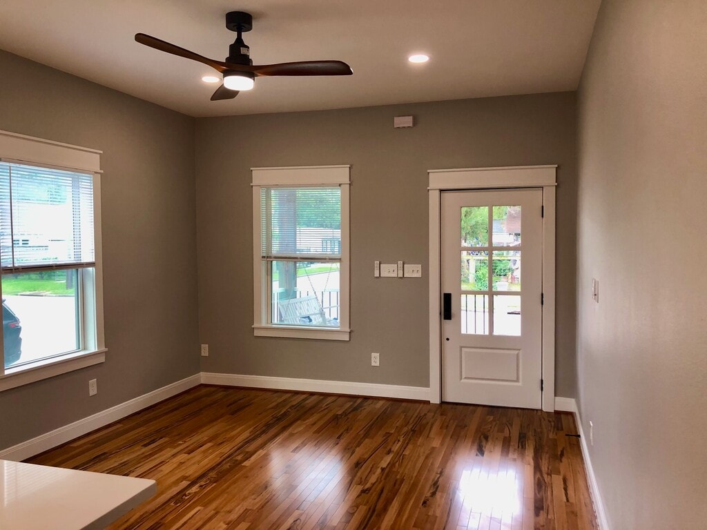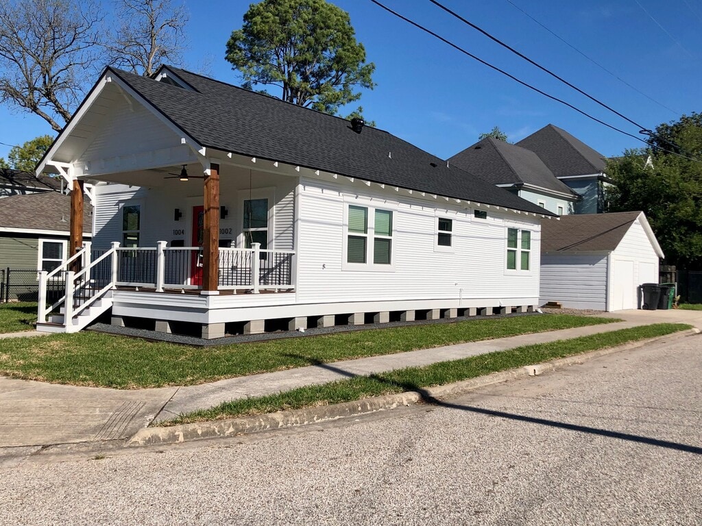 Heights Charm Meets Modern Living 1002 Adele St | Houston, TX 77009 Welcome to this beautifully renovated side-by-side duplex in the heart of the Heights! With its classic white bungalow exterior, bold red front door, and oversized covered front porch with swing, this home delivers the perfect blend of character and contemporary style. Enjoy relaxing evenings on the spacious front porch featuring wood columns, a ceiling fan, and a porch swing an ideal spot for morning coffee or winding down after work. Inside, you'll find a bright, open-concept layout with upscale finishes throughout: Hardwood floors High ceilings with recessed lighting Quartz countertops Stainless steel appliances Custom white shaker cabinets Subway tile backsplash Designer pendant lighting Matte black fixtures & hardware The kitchen offers a large island perfect for entertaining and everyday living. Natural light fills the space through oversized windows. The bathroom features a walk-in glass shower with full subway tile surround and modern black finishes for a clean, elevated look. The stackable washer/dryer is also conveniently located within the unit's bathroom. Bedrooms offer hardwood flooring, generous closet storage and shelving, and great natural light! Property Highlights: Side-by-side duplex with insulated sound proof interior wall and shiplap on both sides (no upstairs neighbors) Large covered front porch with swing Central A/C & heat Energy-efficient windows Stackable washer/dryer in unit Private entry access for each unit Owner maintained Located in the highly desirable 77009 Heights area with quick access to: I-45 & 610 Downtown Houston Heights restaurants & coffee shops White Oak Bayou trail This is Heights living with style, comfort, and charm