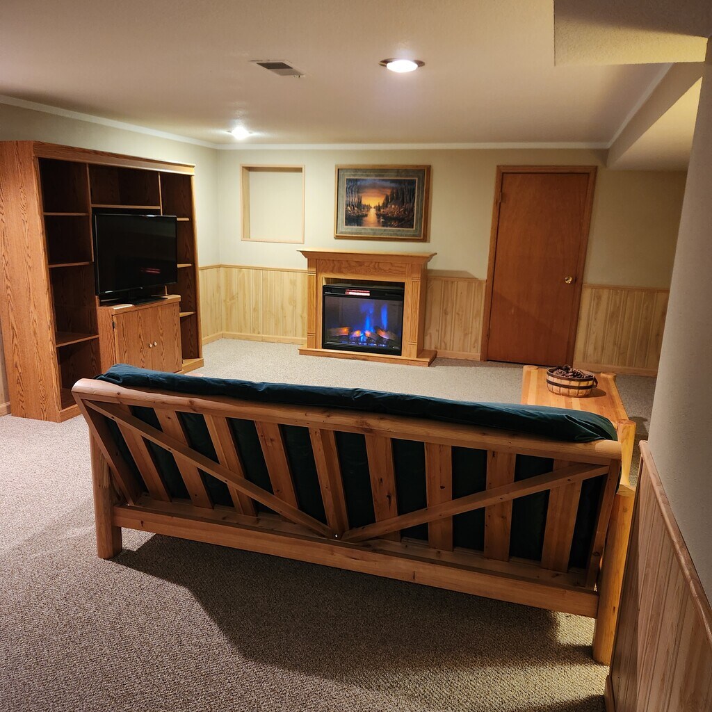 I am renting the lower level of my home in Roseville near Lexington and Highway 36. It does not have a separate bedroom- but it has a separate area that works well for a bedroom-area behind the futon. It is furnished with the items shown. Those are 2 futons. 44" LG flat-screen smart TV. All new carpet throughout. Large walk-in closet and a hall closet with shelving. Private bathroom with shower- no tub. New carpet. Bathroom closet with shelving as well. The electric fireplace is remote controlled and can be programmed for auto timed temperatures and the flame color can be changed-Blue flame shown in picture. The entry is common through the kitchen and the door to the lower level is immediately upon entering in the kitchen (see picture) We share the kitchen on the main level and laundry room (which is in the lower level) we can arrange a time for me to do laundry once per week at your convenience. The kitchen has two doors that close off my living area to allow privacy for you and me. There is a private fenced yard with large deck in the backyard and it is a quiet neighborhood near many trails, parks and lakes. Three season screened in porch. You would have one space in the driveway for your vehicle (prefer no oil or other fluid leaks) Rent includes: No charge for High-speed wi-fi through xfinity No charge for water/sewer 50% of monthly gas/electric bill No pets. Prior to move-in you would be required to pay $69.99 directly to Rental History Reports for a full background check. First month's rent of $750 and $750 damage deposit are due prior to move-in. Damage deposit will not be allowed as last month's rent. Either party can give a 30 day notice for move-out. If interested please tell me a little about yourself and your work hours and habits so we can be sure we are not trying to shower at the same time and that our sleep times align. Thank you-