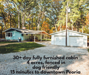 This fully furnished property at 1008 W Singing Woods Rd. features 2 bedrooms and 1.5 bathrooms, encompassing a total of 1,234 square feet, plus a full basement with livingroom, indoor fireplace, and half bath. Utilities are included in rental price. The property sits on four (4) acres that is completely fenced in, including a front gate for added security and peace of mind. Up to two well trained dogs are welcome. The main floor living room offers ample space and a wood burning fireplace. The kitchen is equipped with essential amenities, and the main floor bathroom features a tub/shower combination & starter supplies (shampoo, conditioner, & body wash). Additional conveniences include in-unit washer and dryer, heating, and Wi-Fi access. The exterior provides storage space for added utility, 2 car detached garage and plenty of additional parking, an outdoor wood fireplace under the pavilion area, and a fire pit. The rental price for this property is competitive within the area. This home is suitable for those seeking a 1+ month furnished rental for traveling professionals (nurses, Caterpillar, hospitals, etc.) This property is next to the beautiful Singing Woods Nature Preserve and Tawny Oaks with over 5 miles of hiking trails and a nature path. Dunlap Community School District Schools - Banner, Dunlap Grade, and Dunlap High