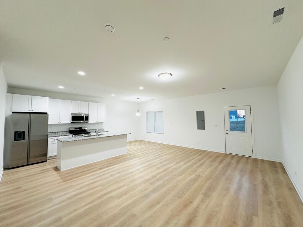 This newly built 3-bedroom, 2.5-bath townhome in the highly sought-after Townes of Kendall is ready for you to move in! Beautiful luxury vinyl flooring throughout the entire first floor, highlighting the spacious living areas. The fully upgraded kitchen features 42" cabinetry, gorgeous granite countertops, and a large kitchen island with an integrated sink, equipped with sleek stainless-steel appliances. The first floor boasts 9-foot ceilings, creating an inviting space filled with natural light. Upstairs, you'll find three generously sized bedrooms, a loft, two full baths, and a convenient laundry closet. This home is packed with modern amenities and energy-efficient features, including high-performance windows, an energy-efficient HVAC system, and upgraded insulation. House has EV charger-ready outlets, an ECOBee thermostat, Samsung WiFi-connected appliances, and a Wi-Fi-enabled garage door transmitter. Requirements: Income should be 2x monthly rent. Credit Score should be 660 plus. No Collections. No Late Payments. Tenant pays Electricity, Gas, Water, Sewer, Trash. Owner pays HOA which includes lawn care and snow removal.