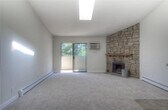 Second-floor end unit which is bright, open floor plan with oversized wrap-around windows, wood-burning fireplace, updated kitchen featuring stainless steel appliances and granite-look counters, full-size in-unit washer/dryer, A/C, and private covered balcony with mountain views from living room and primary bedroom. Large primary suite includes walk-in closet and private en-suite bath. Second bedroom ideal for guests or home office. Assigned parking space plus ample guest parking in secure building. Amenities: resort-style pool, club house, tennis courts, playground, and scenic walking paths with ponds. 12-month lease. Pets welcome. No smoking. Credit and background check required. Freshly painted and move-in ready.