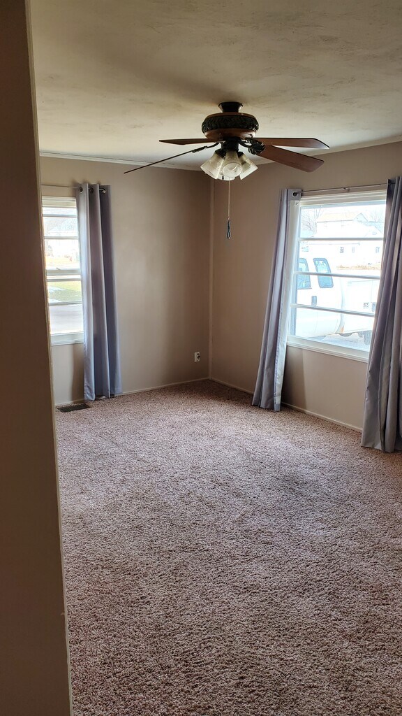 Nice little 3 bedroom house , 1 bathroom with tub/shower combo. Bedrooms are small but Living room and kitchen are average size, Kitchen has microwave above the gas stove. Washer and dryer in house. 1 car garage with opener. Furnace and central air, Fenced in backyard. House is on a slab so everything is on one level. Small pet ok with pet deposit .