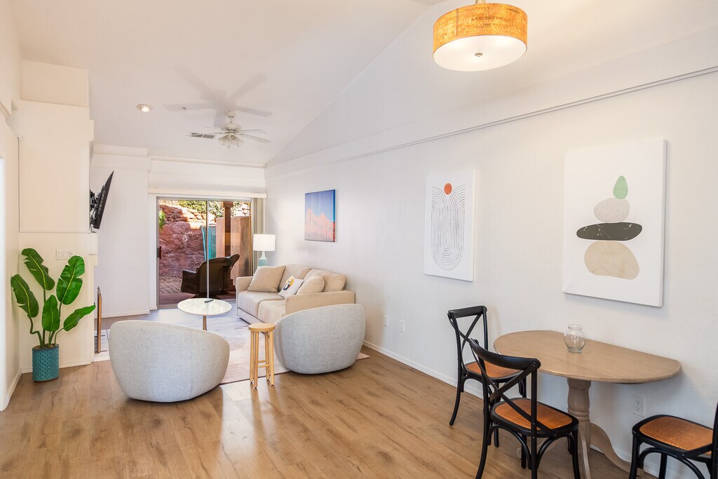 Welcome to Peaceful Pine Leaf! Brand new to the market and located in the coveted Nepenthe community neighborhood, this furnished single-story townhome offers a rare blend of walkability, privacy, and convenience in one of West Sedona’s most desirable neighborhoods. The home sits in a quiet, charming residential pocket that’s an easy walk to top restaurants, cafés, Whole Foods, parks, and several of Sedona’s most popular trails and pathways. Inside, the home has been recently renovated and is fully furnished for comfortable medium-term living. It features two bedrooms, two full bathrooms, an attached garage plus a covered carport (covered parking for two vehicles), in-unit washer and dryer, and a private back patio with an outdoor storage closet. Rent: $3,222 per month Lease Term: 2 to 6 months Utilities: All utilities included within reasonable use, including high-speed internet. Highlights • Furnished and move-in ready • Quiet, walkable West Sedona neighborhood • Steps from restaurants, grocery, retail, parks, and trail networks • 2 beds, 2 full baths • Private backyard patio with storage • Attached garage + covered carport • Washer/dryer included • Pets allowed • Well-kept HOA with quality amenities and grounds Application Requirements Applicants must have good credit, verifiable income, and clean rental history. You’re welcome to submit the free application, but the official application will be sent separately if you choose to proceed. Notes • HOA rules apply • Utility use expectations will be outlined in the lease • Security deposit and cleaning fee will be provided prior to signing If you’d like more details, photos, or to schedule a viewing, feel free to reach out.