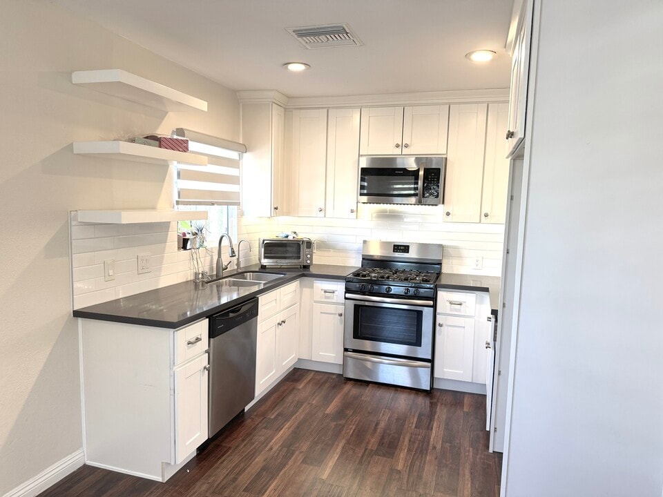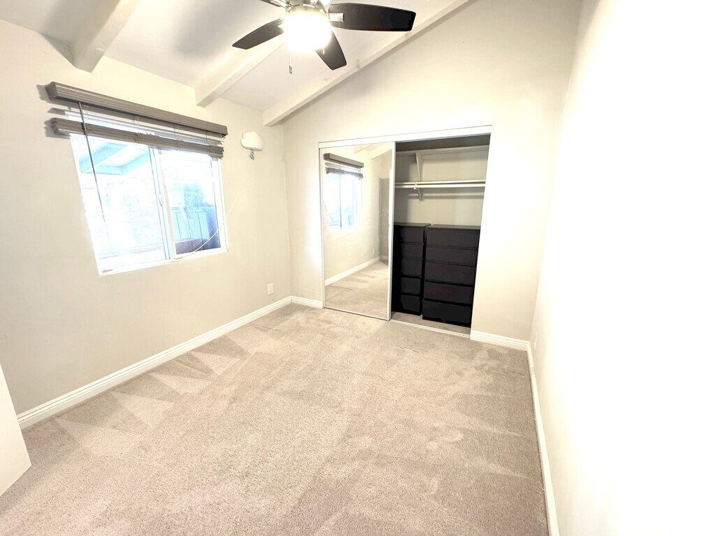 Charming Upgraded Home with Solar, EV Charger & Private Orchard-Style Yard Tucked away on a quiet dead-end street, this thoughtfully upgraded single-family home offers privacy, comfort, and modern convenience in a peaceful setting. Sitting on a generous 4,597 sq ft lot, the 800 sq ft home features 2 bedrooms and 1 bathroom with a smart, functional layout. The home is solar-powered and includes a 220V EV car-charger outlet, making it energy-efficient and future-ready. Inside, enjoy new central air with a smart thermostat, double-pane windows, and stylish preinstalled zebra rolling shades. The kitchen is equipped with updated cabinets, dishwasher, microwave, extra standalone drawers for added storage, and an under-sink water filter for clean, great-tasting water. Additional features include in-unit washer and dryer hookups, combination door locks for key-free entry, hardwood flooring with carpet accents, and multiple storage sheds. Step outside to a true private retreat a large backyard filled with 17 mature fruit trees, including peach, guava, pomegranate, apricot, lemon, navel orange, cherry, dwarf apple, fig, nectarine, almond, and more. Perfect for relaxing, entertaining, or enjoying fresh fruit right at home. Quiet, secure, stylish, and full of upgrades this rare rental feels like a private oasis.
