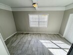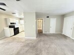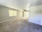 This inviting home features three spacious bedrooms and one well-appointed bathroom, along with washer and dryer connections for added convenience. The home offers a large open kitchen equipped with quartz countertops, black appliances, including a dishwasher, perfect for cooking and entertaining. A separate den provides additional living space for relaxation or work. Outside, you'll find a carport, a storage room, and a fully fenced yard with a gate to the driveway, ideal for privacy, pets, or outdoor activities.