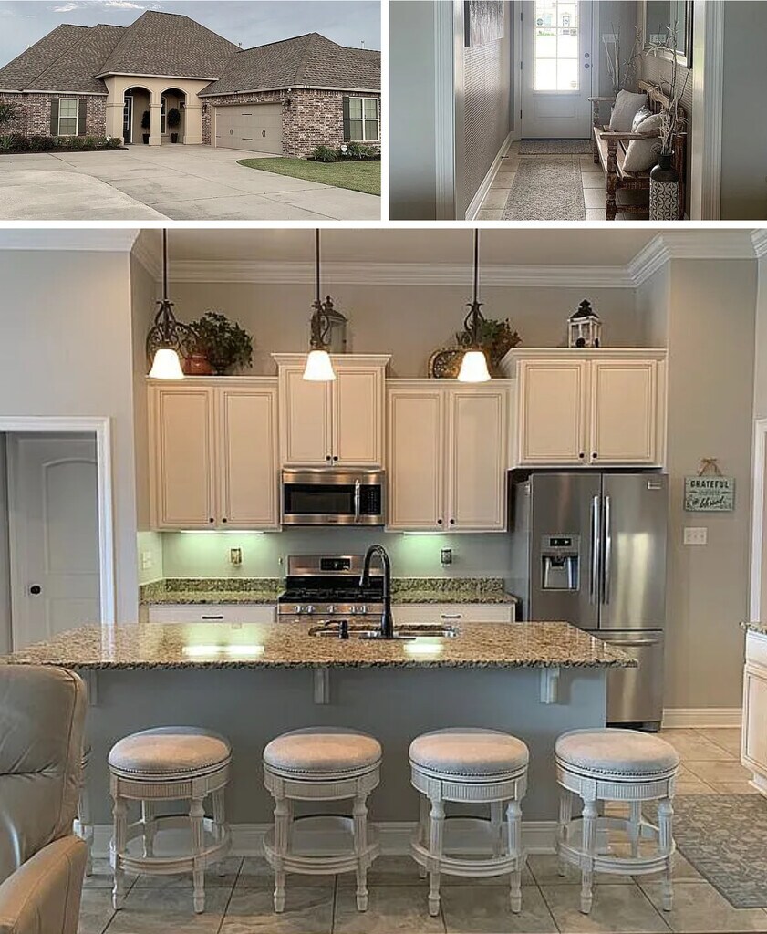 This spacious energy smart home is located within minutes of Southside High School, Youngsville Sports Complex, and Sugar Mill Pond. Square footage is 2350 living and 3238 total. It includes 4 bedroom, 3 bath, open floor plan with gas lantern at entry, as well as a large back yard, storages shed, and pool . Special features include: open floor plan, maple cabinets, upgraded lightening package, ventless gas fireplace with granite surround, wood floors in living room and bedrooms, pool, beautiful landscape, and big back yard. There is 16"x16" tile in all wet areas, mudroom, and entryways, granite counter tops in kitchen and bathrooms, stainless steel gas appliances which include microwave, dishwasher, and oven. All mirrors are framed in bathrooms with custom tile shower in master bath, and huge walk-in closet. Stunning crown moulding, garage door with hardware, tankless gas water heater, gas and electric hook up in laundry room, radiant barrier decking in attic, low E-3 double insulated windows, cypress beams on porch… ($10,000 of upgrades), and no problems with any flooding including the 2016 flood.