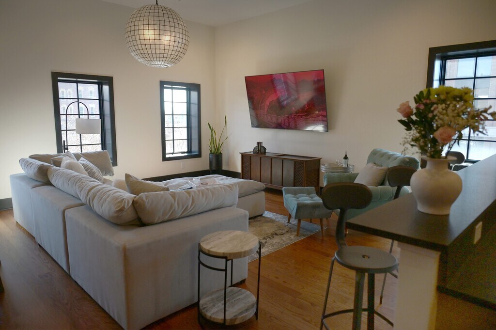 The fully furnished, two bed and two bath property is located in the heart of historic downtown Clarksville. The open concept living room and fully equipped kitchen offer terrific space for a weekly business traveler or corporate lease. Views of the downtown and river district are unmatched. The unit features parking options and is walkable to all major employers and amenities of the downtown area.