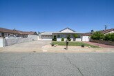 Beautiful POOL Home with 3 bedrooms, 2 bathrooms. Bathrooms have been gorgeously updated. Primary bedroom has modern chic zebra shade blinds and large closet. The en-suite primary bathroom has been updated with modern mirror with built-in LED light and extra features. Shower is also modern and luxurious. 2nd bedroom with wood-look laminate flooring. 3rd bedroom with carpet. Guest bathroom in hallway has been updated with jetted bathtub and sparkling light fixture. Living room has statement fireplace and glass slider door access to the backyard with covered patio and a large refreshing POOL! Dining room has tile flooring. Kitchen has a great view of the pool in the backyard as well and access to the garage. 2-car garage and a LONG LONG driveway! Side yard features a wide gate for anyone who is looking for additional space with access. The covered patio is a great shaded area for outdoor recreation. Pool is an amazing backyard oasis! Perfect enjoying the warm California weather! Fridge and dishwasher stay with the home. Washer and dryer hookups in garage.