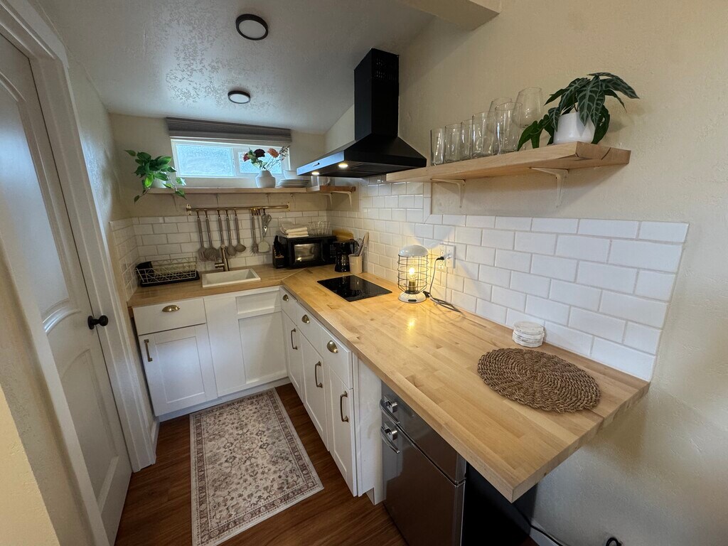 Thoughtfully designed with vaulted ceilings and high windows that create an open, airy feel. There is a well-appointed kitchen with butcher block counters and cooktop make the space both functional and inviting. The private glass walk-in shower and fenced patio add comfort and privacy, offering a quiet retreat for longer stays. Separate entrance for added independence. Enjoy the best of Paso Robles from this private Westside studio, perfectly situated on the edge of downtown and just minutes from world-class wineries. Walk to tasting rooms and restaurants in 15 minutes, then unwind in your own private patio retreat.