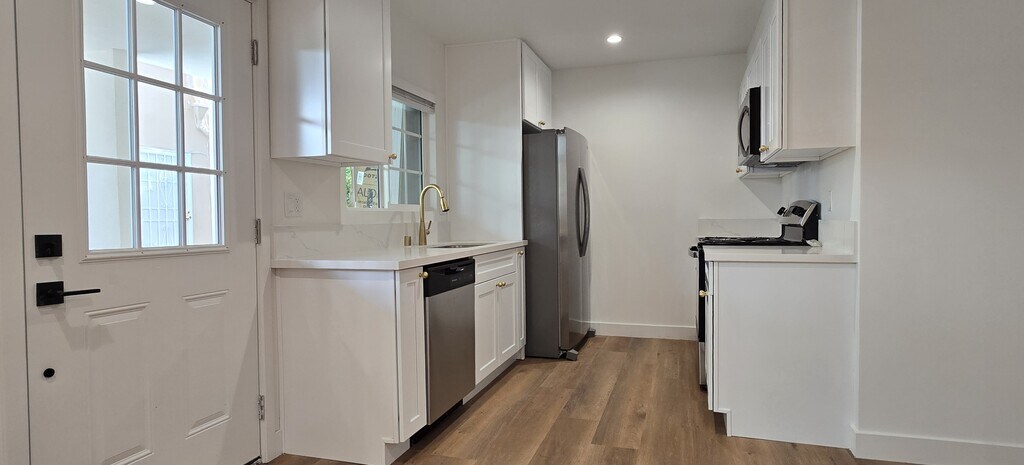 Unidad recientemente renovada con inmaculados baños y cocinas completamente nuevos con electrodomésticos de acero inoxidable de primera calidad, hermosos pisos de madera y detalles en los comedores. También incluye una espaciosa lavandería totalmente equipada, un amplio armario, un estacionamiento cubierto y acceso a un patio trasero recientemente remodelado. El edificio está compuesto por (1) una gran cama estilo Town-Home de dos pisos y 2 unidades de baño con balcón, y (2) unidades de 2 dormitorios y 1 baño con balcón. El apartamento está cerca de restaurantes y tiendas de primera clase, a minutos de UCLA, Beverly Hills, Bel-Air y Century City. Oportunidades perfectas para familias o estudiantes de UCLA.