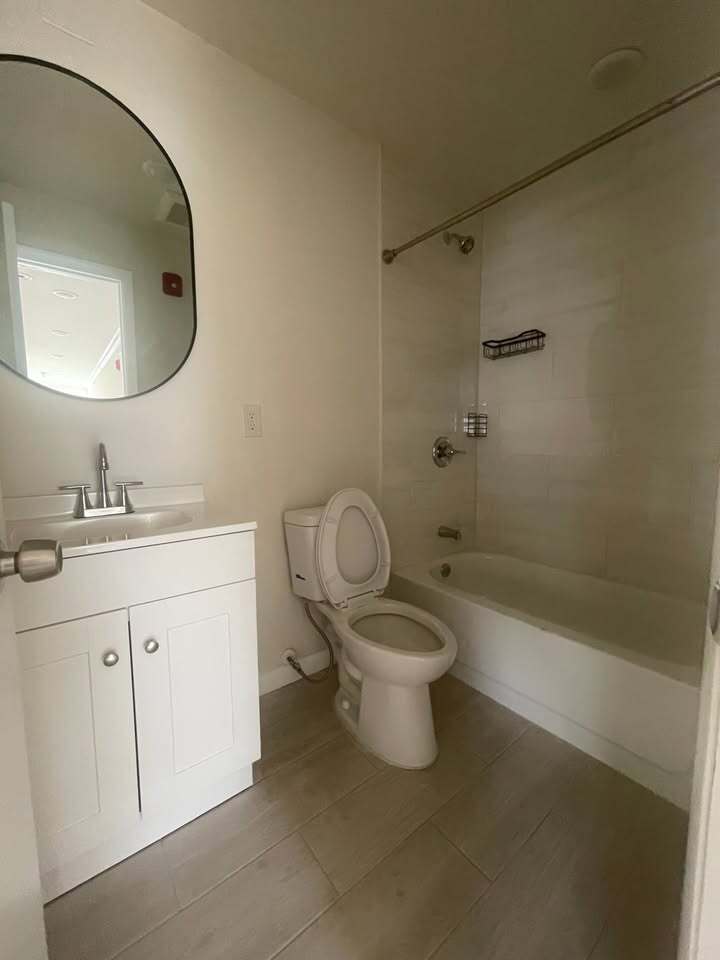 Modern and bright 2-bedroom, 2-bathroom apartment featuring an open-concept living area, updated kitchen, and ample closet space. Laundry available in the building. Comes with one dedicated parking spot for one car. Conveniently located near shops, public transport, and parks. First month's rent 1.5 month security deposit
