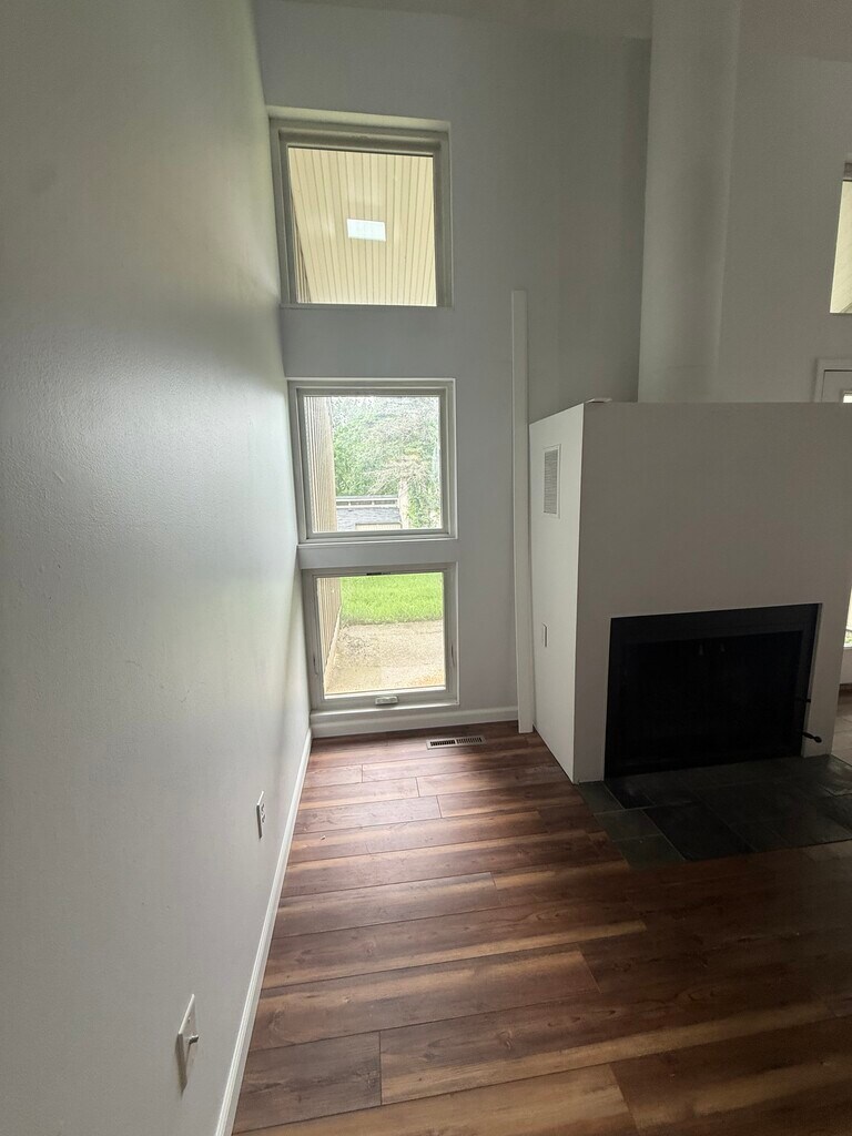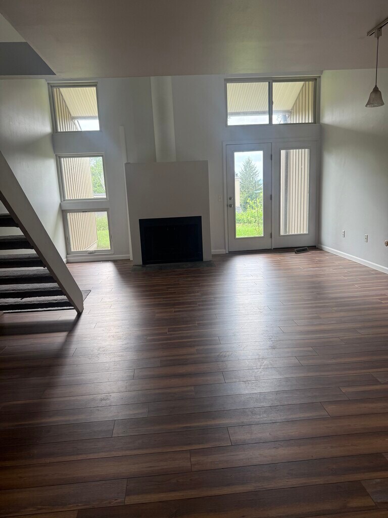 Contemporary, 1 Bedroom loft with Study Townhouse. 30foot cathedral ceiling, skylights, Fireplace. Walk out patio that over looks meadows. Natural gas heat, central air conditioning. 12 mins to Cornell, 6-8mins to downtown Ithaca On Ithaca Transit Bus Route. Walk to Italian Carry out, Buttermilk Upper State Park and more!