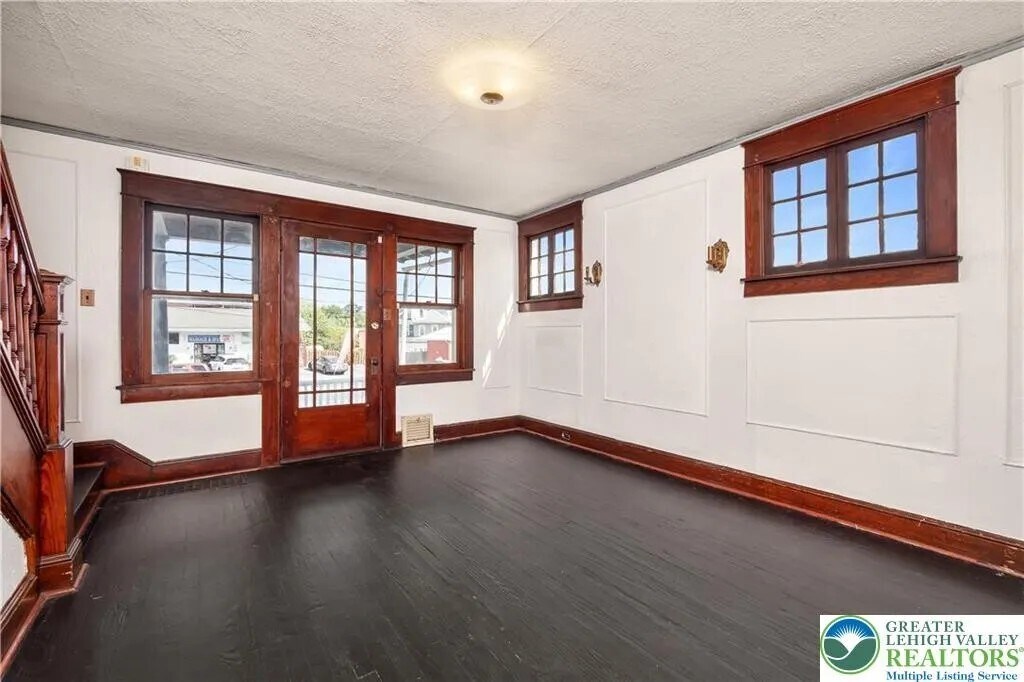 This 3-bed, 1-bath townhouse is a beautiful home with abundant natural lighting in every room. The dark wood floors, white accented walls, and exposed wood trim create a beautiful, cozy space. The large primary bedroom features his/her closets and the second and third bedroom feature one closet each. The connected dining and living rooms, each with a coat closet, are perfect for modern living and entertaining. In addition to the main and second floors comprising 1,200 sq. ft., this home includes a large unfinished basement extending the full length of the townhouse as well as a crawlspace under the front porch, providing ample storage space. Parking is included with rent and available behind the property. Townhome comes unfurnished. If interested, please contact owner for a tour. This may be done prior to paying the application fee.