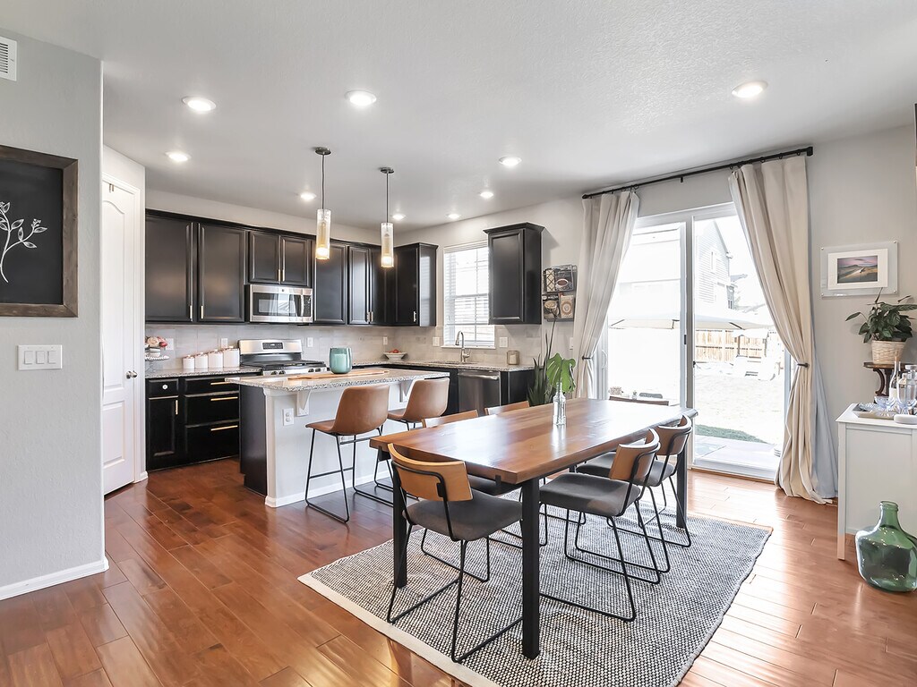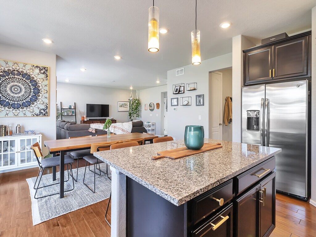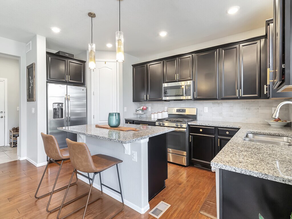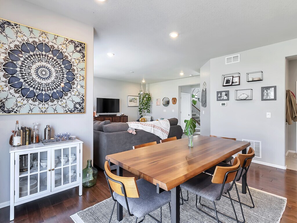 Hogar bellamente renovado en una ubicación tranquila. Camine hasta un plano abierto con una amplia cocina completa con electrodomésticos de acero inoxidable y una gran despensa. Los hermosos pisos de madera cubren todo el nivel principal, que también cuenta con un baño auxiliar y un salón de barro con asientos tipo banca y un armario adicional para abrigos. El espacio de entretenimiento adicional se encuentra en el exterior, con un patio amplio y amplio, ideal para disfrutar de las noches de verano de Colorado. En la planta superior encontrará la lavandería y tres dormitorios. El dormitorio principal se completa con un baño en suite de cinco piezas. Un baño compartido con lavamanos doble completa este nivel. Dirígete al sótano para encontrar otro espacio, perfecto para un área de juegos, un espacio para ver películas o un gimnasio. Un dormitorio adicional (o espacio de oficina) con un enorme armario de almacenamiento y un baño completo contiguo completan el sótano terminado. La casa también cuenta con dos garajes para automóviles y múltiples armarios para guardar más cosas en el sótano. La comunidad Sierra Ridge ofrece muchos servicios, como piscina comunitaria, senderos para caminar, clubhouse, canchas de baloncesto y varios parques y patios de juegos. Esta casa está convenientemente cerca de la E-470, centros comerciales, restaurantes y el tren ligero.