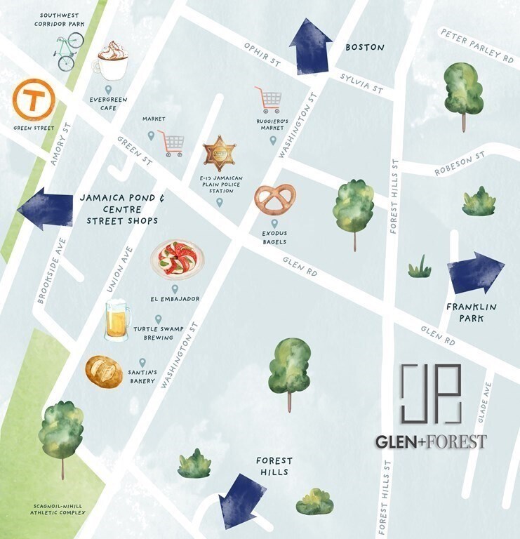 Está localizado en el barrio Egleston Square, 106 Forest Hills St en el código postal 02130 de Boston, MA.