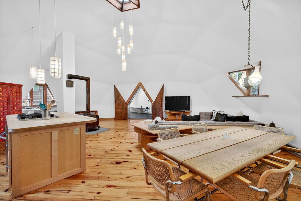 One-of-a-kind architectural heirloom. A 1970s geodesic dome connects with a modern angular home built in the 2000s. Spacious rooms adorned with modern art by local artists and 15-foot ceilings in the master bedroom. Step through Hobbit-style doors into the charming dome portion, which you can warm with a wood-burning stove or central heat. Three bedrooms, four baths, and two distinct living rooms. The dome houses the kitchen, dining for six, a large sectional sofa with television, a wood-burning stove, and a full bath with deep whirlpool tub. The modern addition brings clean modern lines, a second living room, spa-like master suite with steam shower, and an elegant loft office with excellent outdoor views. The backyard has a private gazebo and a patio with a grill and outdoor dining area. Fully furnished, entire unit, no other occupants. Roof, refrigerator, central heater and air conditioner are brand new and state-of-the-art. High-speed WiFi throughout. In-unit washer/dryer. Covered parking for two. Two minutes on foot to Tinker Street where you'll find quaint local shops and eateries, 15 minutes from several gorgeous nature hikes, yet completely secluded. Pets welcome. 30-day minimum lease. $7,000/month, first month + $7,000 security deposit due at signing. All utilities included (electric, gas, water, WiFi). Pets welcome with $500 refundable pet deposit. Covered parking for 2 vehicles. No smoking inside. Property is fully furnished inventory list provided with lease.