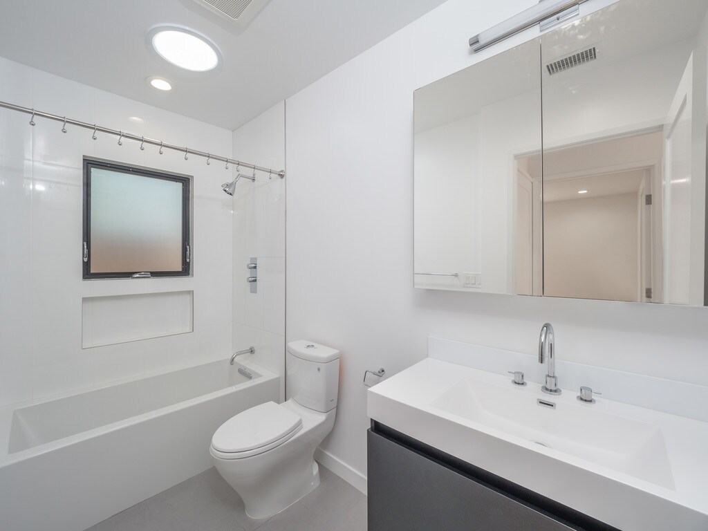 There are 2 bedrooms with en suite bathrooms. A walk in closet in the master bedroom. A Living/Family Room, Breakfast bar. The kitchen is equipped with state of the art stainless steel appliances and LCG refrigerator/freezer. There's a private backyard solely for this unit. There's a converted air conditioned garage space that has been used an office, family room and a gym.