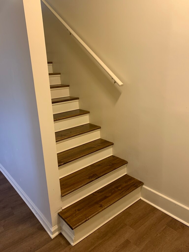 1065B Brandy Lane, Richmond, KY 40475. 2BR / 2dúplex de baño completo con tercera habitación pequeña que puede servir como guardería, dormitorio pequeño o almacenamiento, todo en un estacionamiento de 1 acre con estacionamiento fuera de la calle. Conexión para lavadora/secadora en la unidad, exterior de ladrillo y vinilo, dormitorio principal en la planta baja con su propio baño completo y vestidor. Pequeño espacio de almacenamiento bajo la escalera. Se permite UNA mascota pequeña por un cargo de $25 por mes, además del alquiler. El alquiler incluye el cuidado del césped y la basura. Todas las demás utilidades pagadas por el arrendatario. KU electric (Heat Pump y central AC), Richmond y Madison County para servicios públicos de agua y alcantarillado.