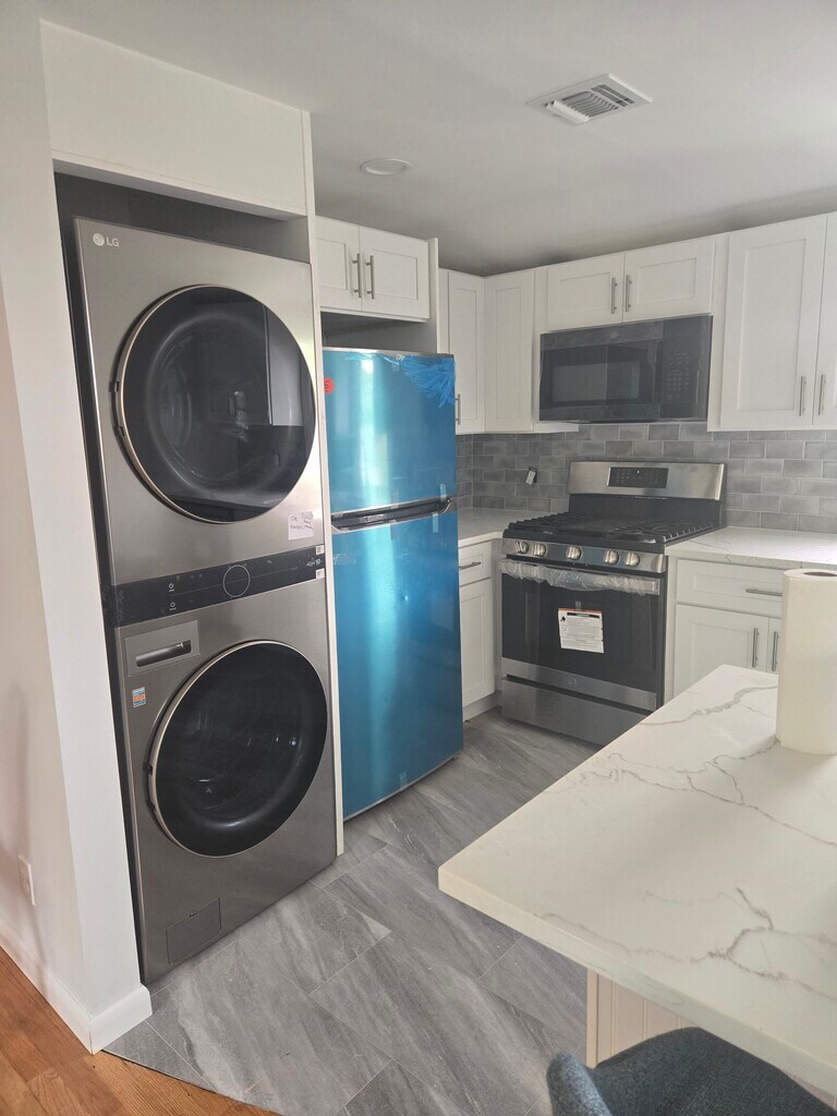 1 Bedroom, 1 Bathroom 2nd Floor Apartment in Ridgefield Park, NJ Discover comfort and convenience in this recently renovated 2nd floor apartment with 1 bedroom and 1-bathroom in desirable Ridgefield Park. The recently built kitchen is furnished with modern stainless steel appliances including the sleek washer and dryer. The kitchen and living room are separated by a granite island, creating an open concept entertainment space billowing with natural light from the many windows. The bedroom sports a walk-in closet and the apartment has a new and effective HVAC unit for heating and cooling. Rent includes cold/hot water and street parking is readily available. Amenities Laundry in Unit Central Air Conditioning Walk-In Closet Tub/ Shower Stainless Steel Appliances Gas Oven/ Stove top Hardwood Floors Parking Street Parking is ample and free Access Private Entrance Location: Easy access to bus or train lines into NYC Easy access to I-95, I-80, Route-46 Restrictions No Pets Allowed No Smoking