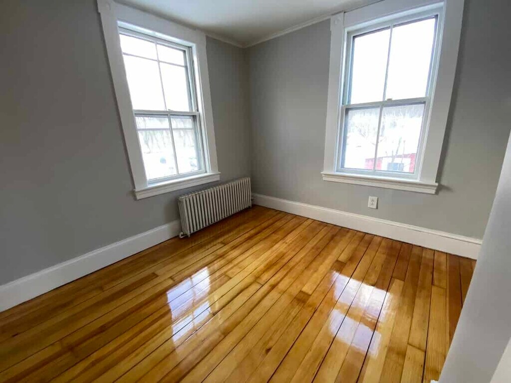 AVAILABLE FEBRUARY 1ST! This beautifully RENOVATED duplex is a 2 bedroom, 1 bathroom unit is ready now and has been completely remodeled. Refinished wood floors throughout except for the tile in the kitchen and bathroom. The kitchen, bathroom and living room are on the first floor. Kitchen has stylish quiet-close cabinets and drawers and granite countertops. Beautiful stainless steel appliances (microwave, gas stove, refrigerator) No dishwasher. Both bedrooms are upstairs. One bedroom is large with two closets while the other bedroom is on the smaller side with a closet. The full bathroom has been completely remodeled as well. Coin operated washer & dryer in the basement as well as more storage space. Off-street parking and garage. Tenant pays for electric utilities, economical gas heat, cable & internet and hot water and trash removal. Owner provides snow removal, water/sewer, and lawn care. Year lease. No smoking, only indoor cat considered on a case by case basis. No other pets allowed. First months rent and last months rent required for move-in. Credit check required. Listed by Taylor Real Estate Sq Footage Approximate