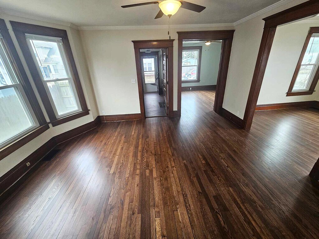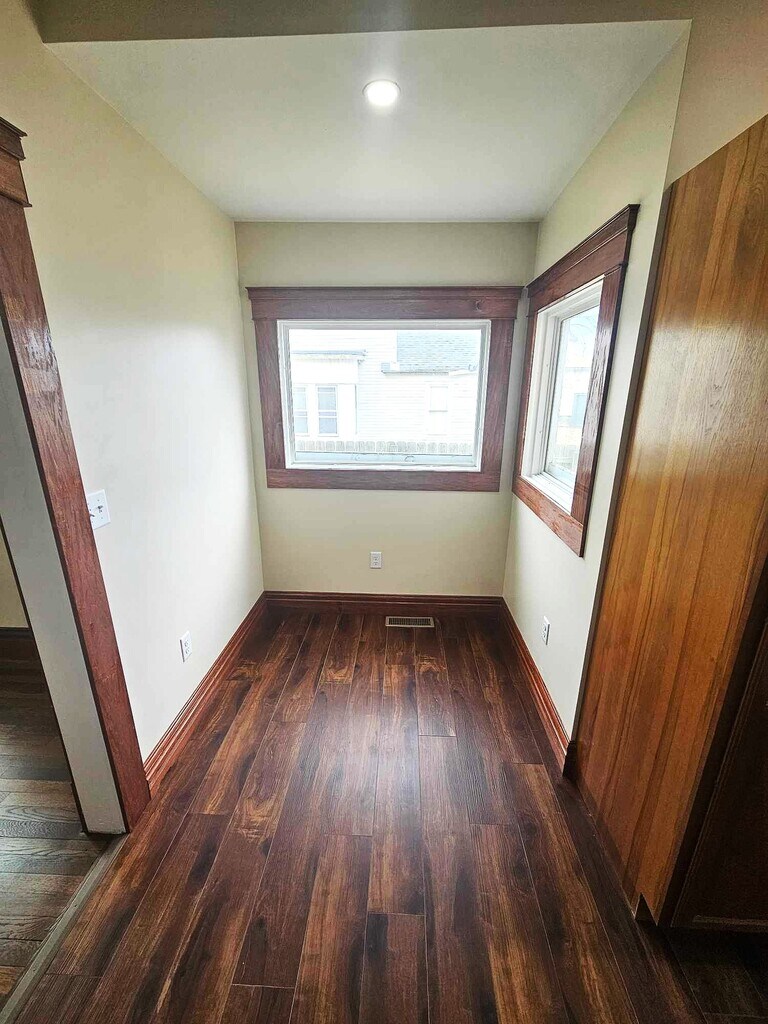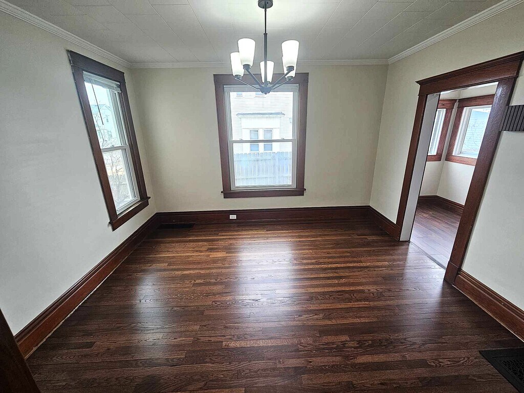 Welcome to this newly renovated lower unit/home. You'll enter into the foyer with a closet. Continue on thru the original solid oak doors into the spacious living area with brand newly refinished hardwood floors and plenty of natural light. Continue through the dining room into the breakfast nook and kitchen with brand-new stainless-steel appliances, quartz countertops and washer/dryer hookups. The bathroom has been completely redone, with modern finishes and tile shower. You'll also find an unfinished basement for storage, fully fenced back yard with a detached 2 car garage opening to the alley. REQUIREMENTS: Minimum income of $3300/monthly, positive references, NO PETS OR SMOKING, must exhibit a pattern of financial responsibility through credit score.