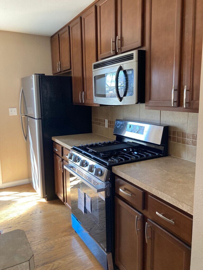 Comfortable west Denver ranch. Two bedrooms plus office and 2 full baths. Kitchen has built in microwave, gas stove, dishwasher, and refrigerator plus stacked full size laundry machines. Front patio facing east and deck off the kitchen in the fenced backyard. Two car garage with garage door opener. Yard is irrigated with a sprinkler system. Pets are allowed if house trained, limited in number, spayed or neutered, and friendly. Limited to two pets combined. No pet deposit or pet rent, but any damage done by pets will not be considered normal wear and tear. This house is close to W light rail line, an easy walk to Decatur or Knox stations. 20 minute bike ride to downtown Denver and close to the frisbee gold course at Paco Sanchez Park. Initial 10 or 11 month lease preferred, then month to month - last tenants stayed here approximately 10 years. Credit check is paid for by property owner. Applications are only accepted after someone has come to see the property, or has arranged for a virtual walk through and around the house. Credit score must be 680 or higher on the FICO 2 scoring unless applicant is receiving house assistance. Property owner pays for trash, recycling, storm water, and sidewalk fees. Tenant pays for combined water/trash, gas & electric, and any internet or phone services. Please call me between 10:30 am and 9:00 pm to schedule a time to see the property, or if you have questions. I answer my phone immediately unless I'm in an appointment, I check texts every few hours during the day, and I look at emails every couple of days. So please CALL if you want a quick response. No smoking in property. No growing marijuana inside or outside. Tenant needs to own a lawn mower to mow lawn in back yard and must keep vegetation short in the backyard garden beds and along the alley. Property owner will help with trimming back any junk trees in the backyard and will maintain the front yard. Renters insurance is not required but HIGHLY recommended.